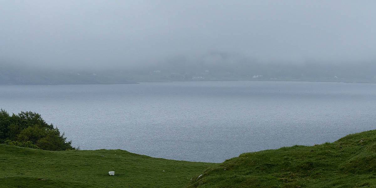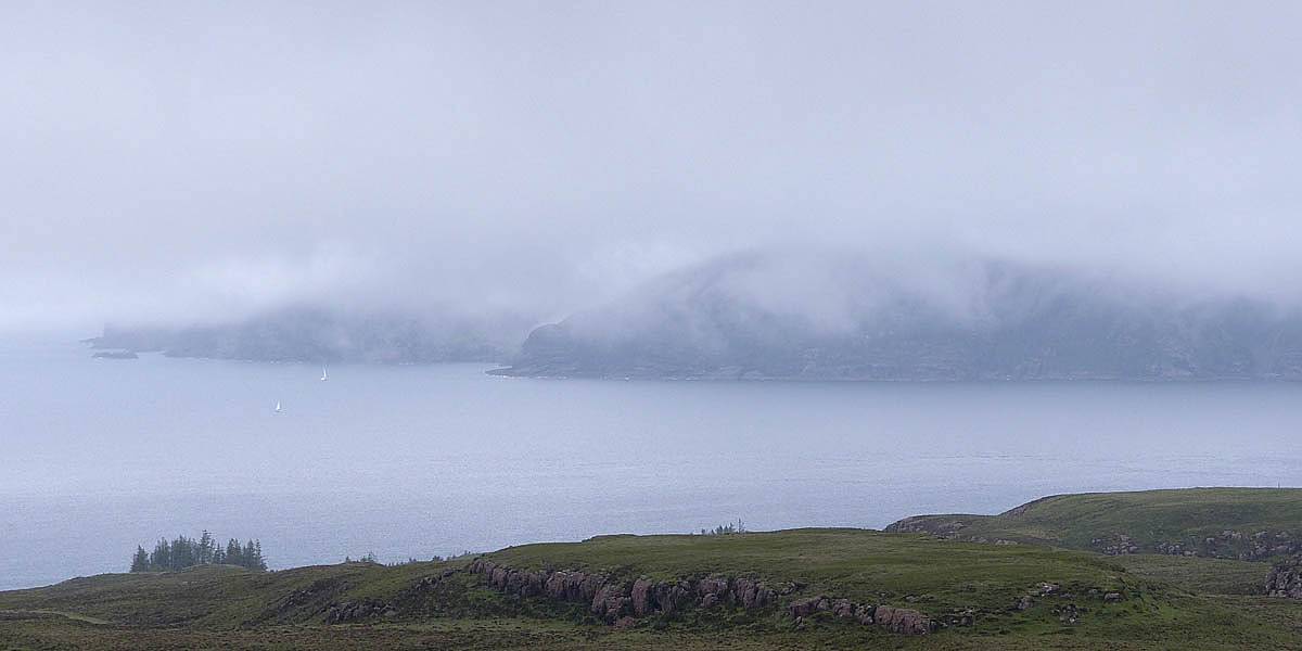 Enjoying the landscape. | Peering North under the low cloud to Ardnamurchan on the other side. |