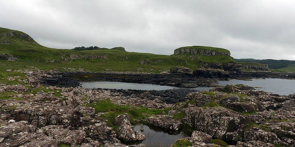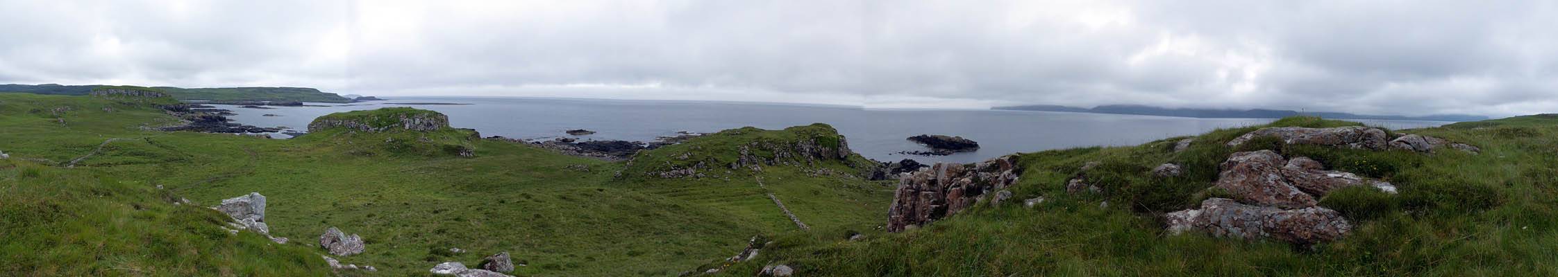 360 degree panorama near the water's edge. | The bathing pool. | Looking North past the rocks to Ardnamurchan on the horizon. |