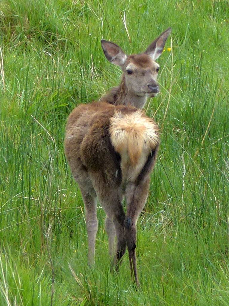 Once back to the car we backtracked to the Glengorm summit where the masts are. On the way we saw deer and a Female Cuckoo. I got out and tried to get closer to the cuckoo. I found out the hard way that the fence was electric when I got zapped! No harm done though. My hand just tingled for a while...