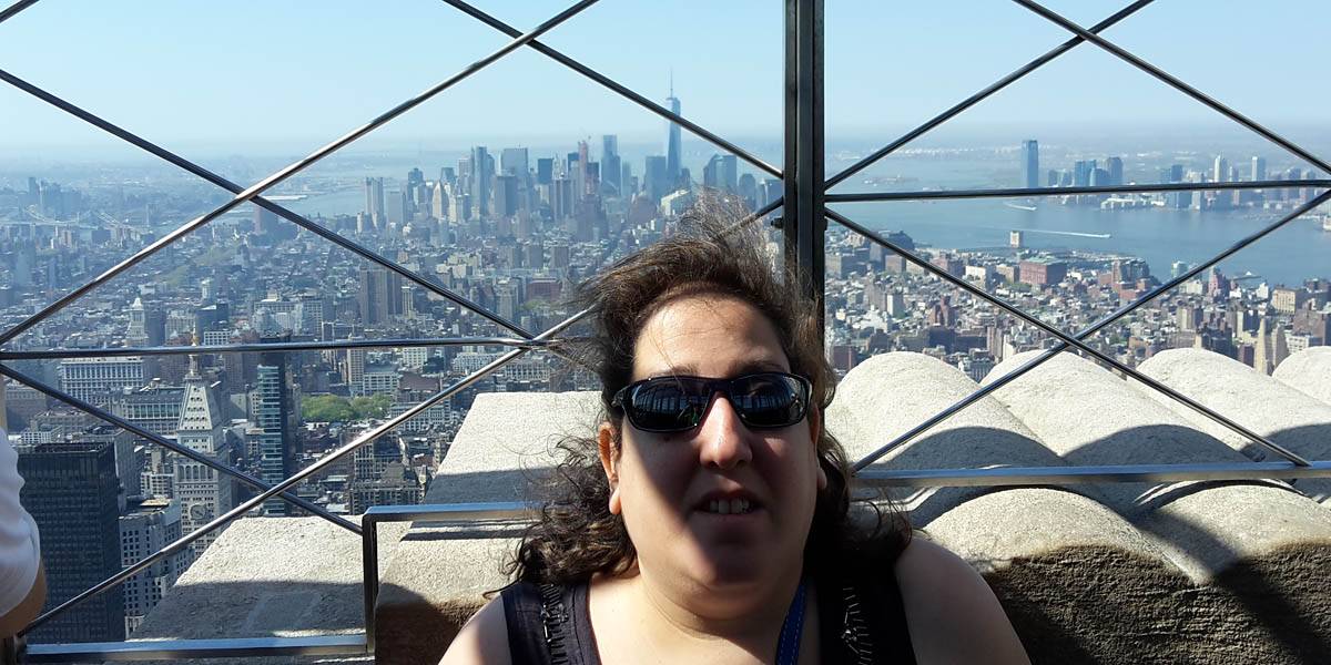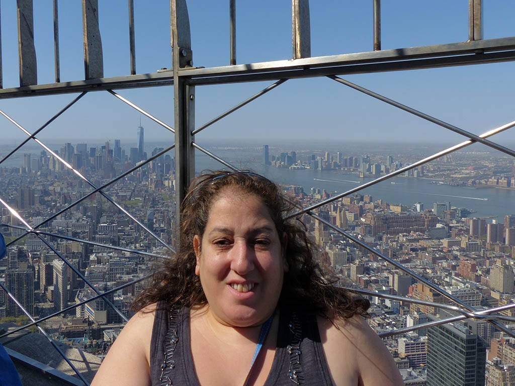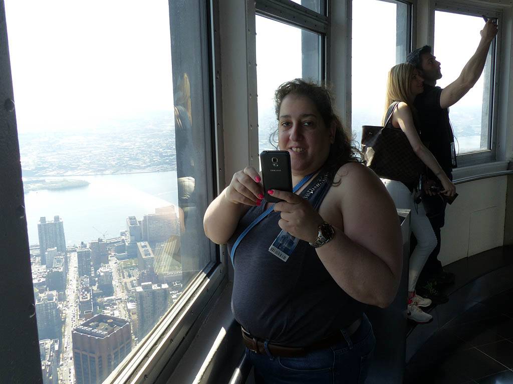 360 degree panorama of Manhattan from the 86th floor. Compare with a similar panorama taken in March 2004. | Two shots of Renée with Lower Manhattan in the background. |