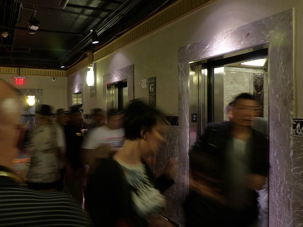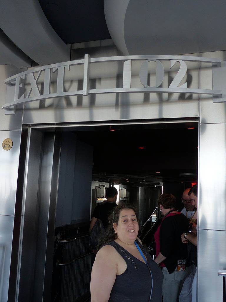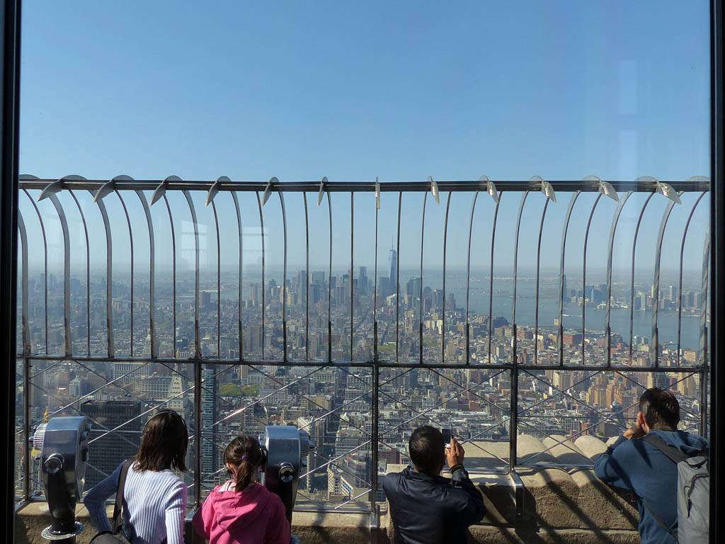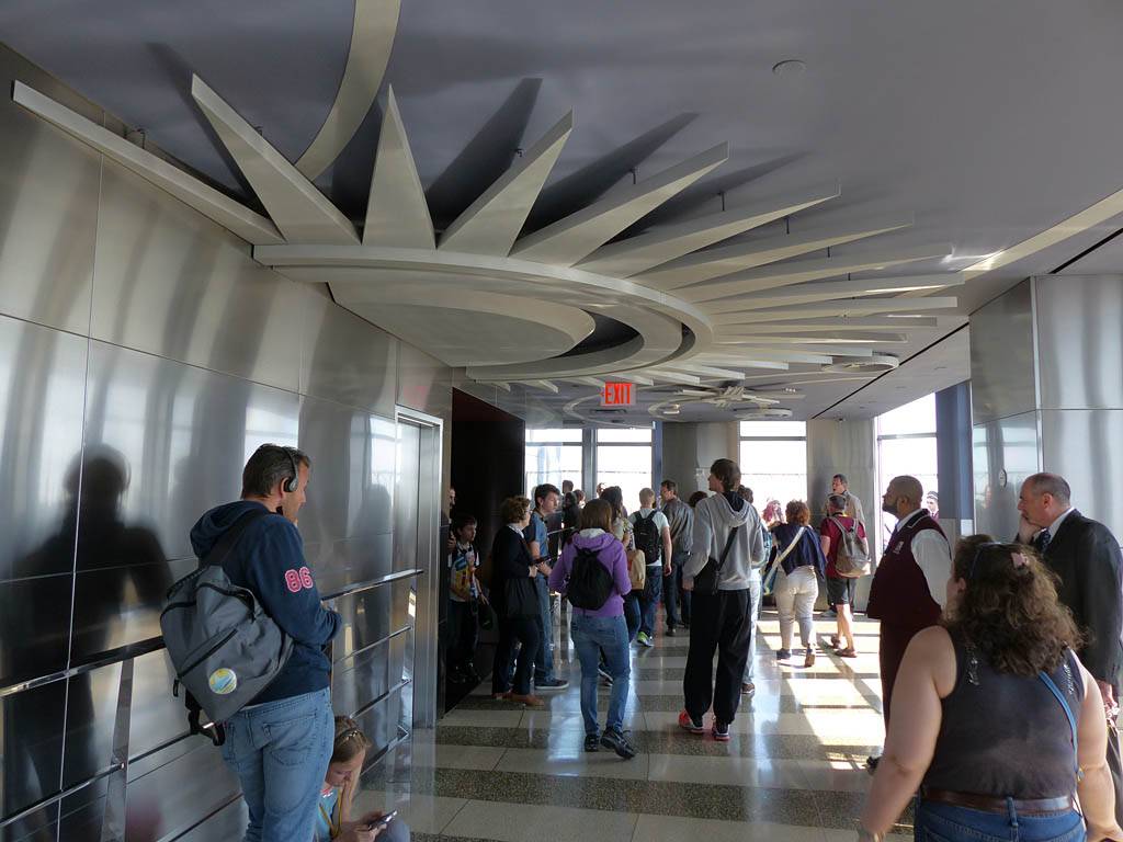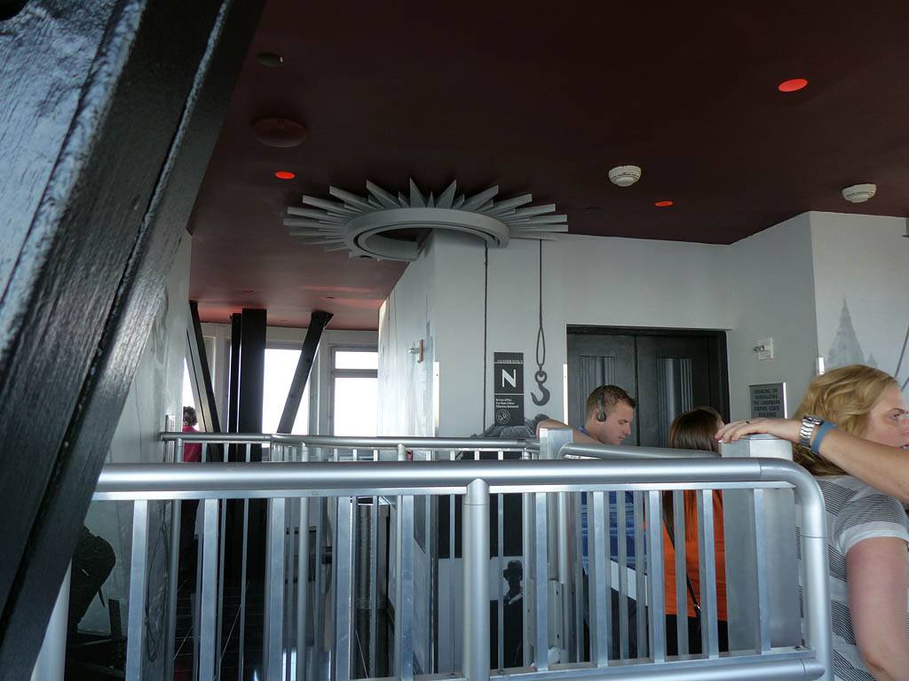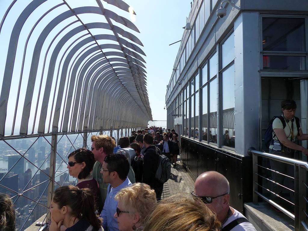 In the queue. | Entering the express lifts. | First views on the viewing balcony on the 86th floor. |