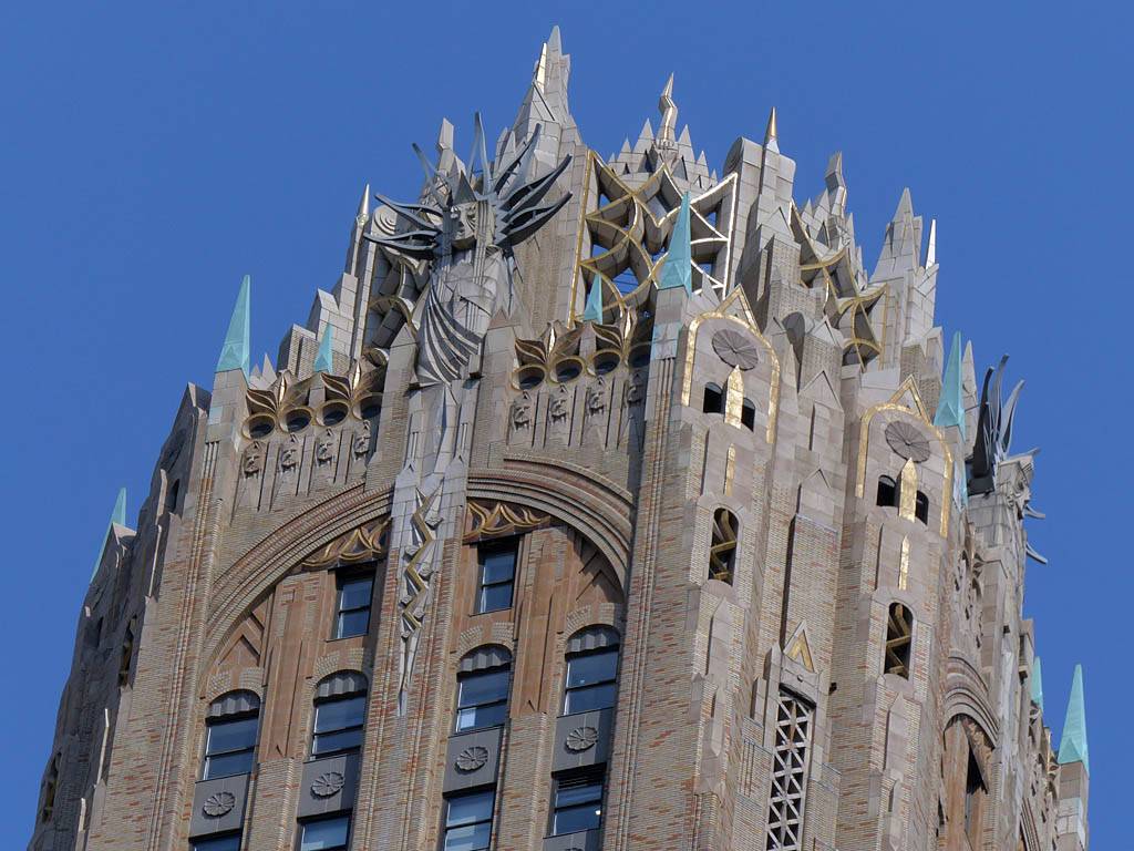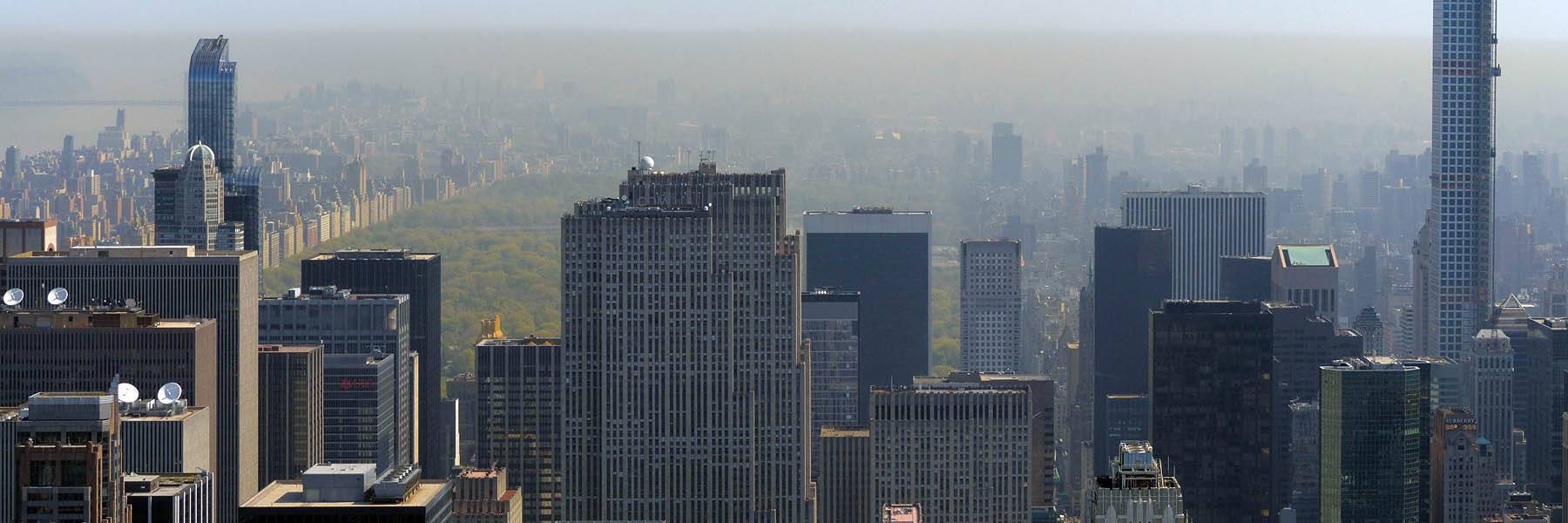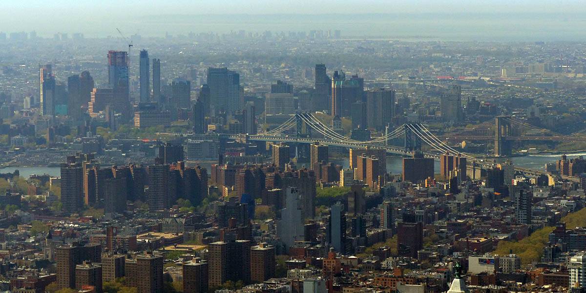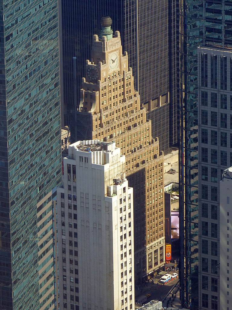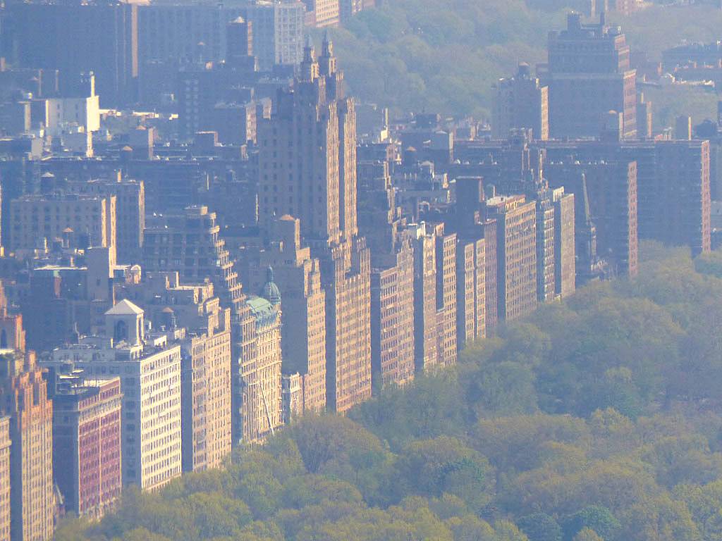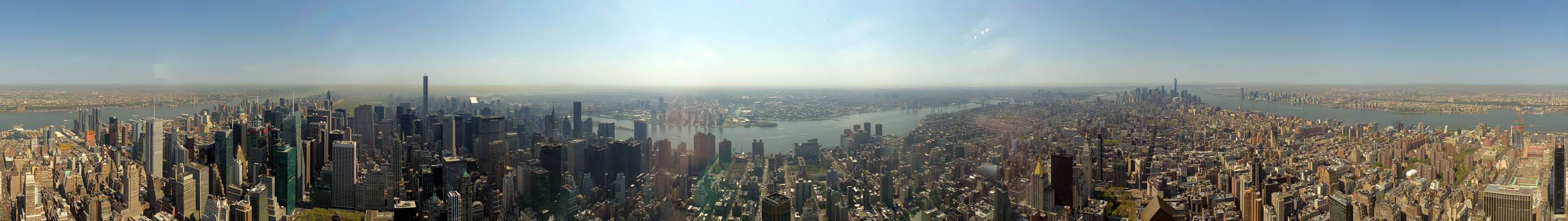 Bryant Park and the New York Public Library. | Looking towards Central Park. | Looking North-Northwestwards towards Times Square. Hudson River in the background. | Looking over the East River at Queens with Newtown Creek on the right. | Chrysler Tower. | Looking East-Northeastwards across Manhattan. The MetLife building is where Grand Central is. East River in the background. |