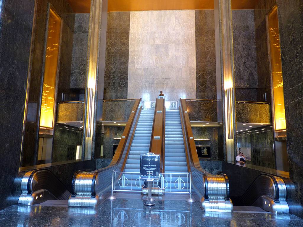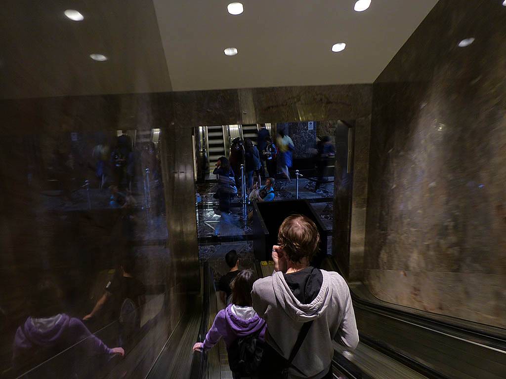 Going down the escalator to the ground floor. | Looking around the entrance foyer. |