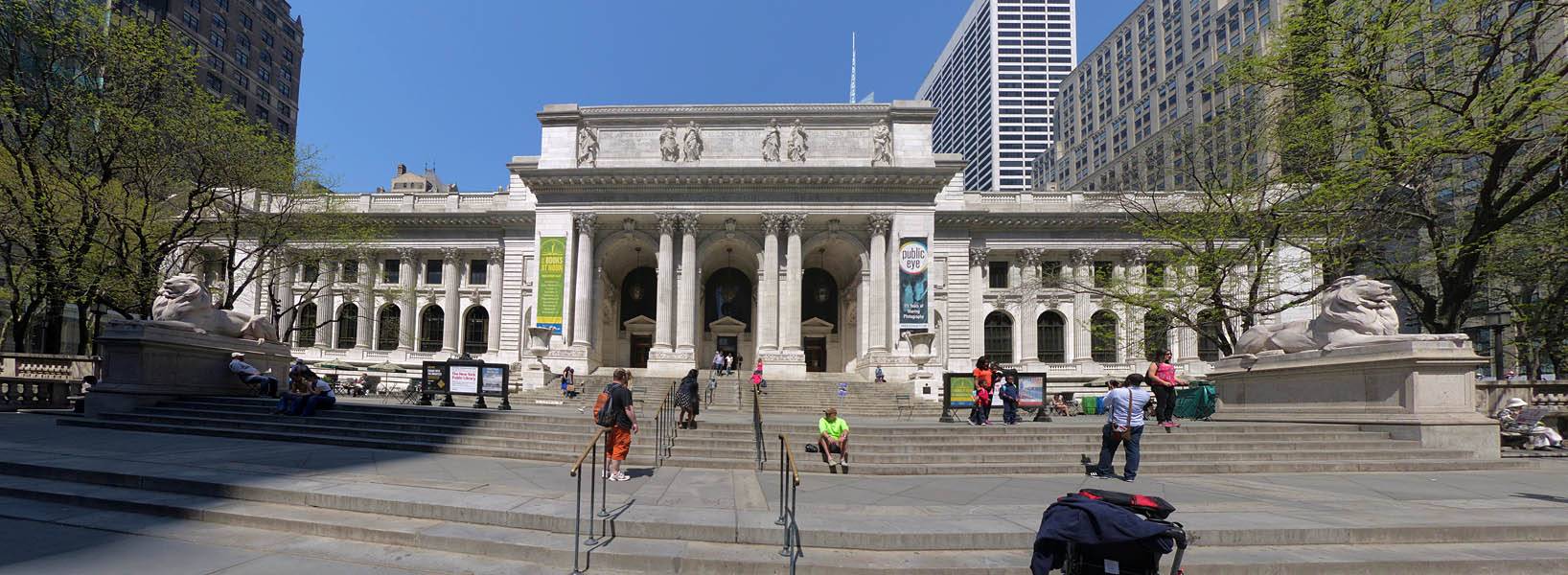 New York Public Library panorama. | St. Patrick's Cathedral from near 50th Street. | Looking around the Rockerfeller Center. |