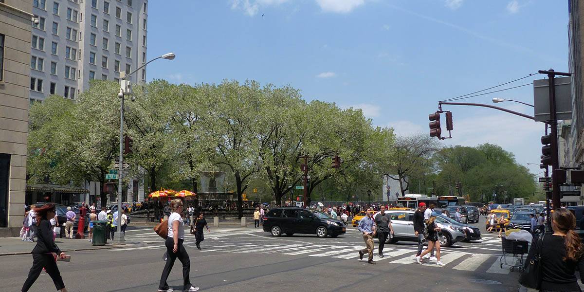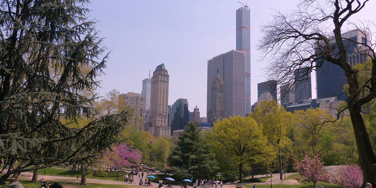 Looking Eastwards towards the zoo. | Central Park Chess and Chequers Visitor Centre and Carousel. | The San Remo towers dominate the local skyline. | The Christopher Columbus statue. |