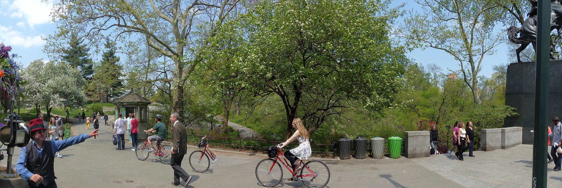 William Shakespeare statue. | Blossom. | The Balto Statue. | Taking pictures as another hotrse and cart slowly overtakes us on the East Drive. |