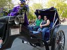 The entrance to Center Drive. | Trotting along Center Drive. Renée and Mike enjoying the ride. | The conductor pointing out sights along the way. | Mike on the cart. |