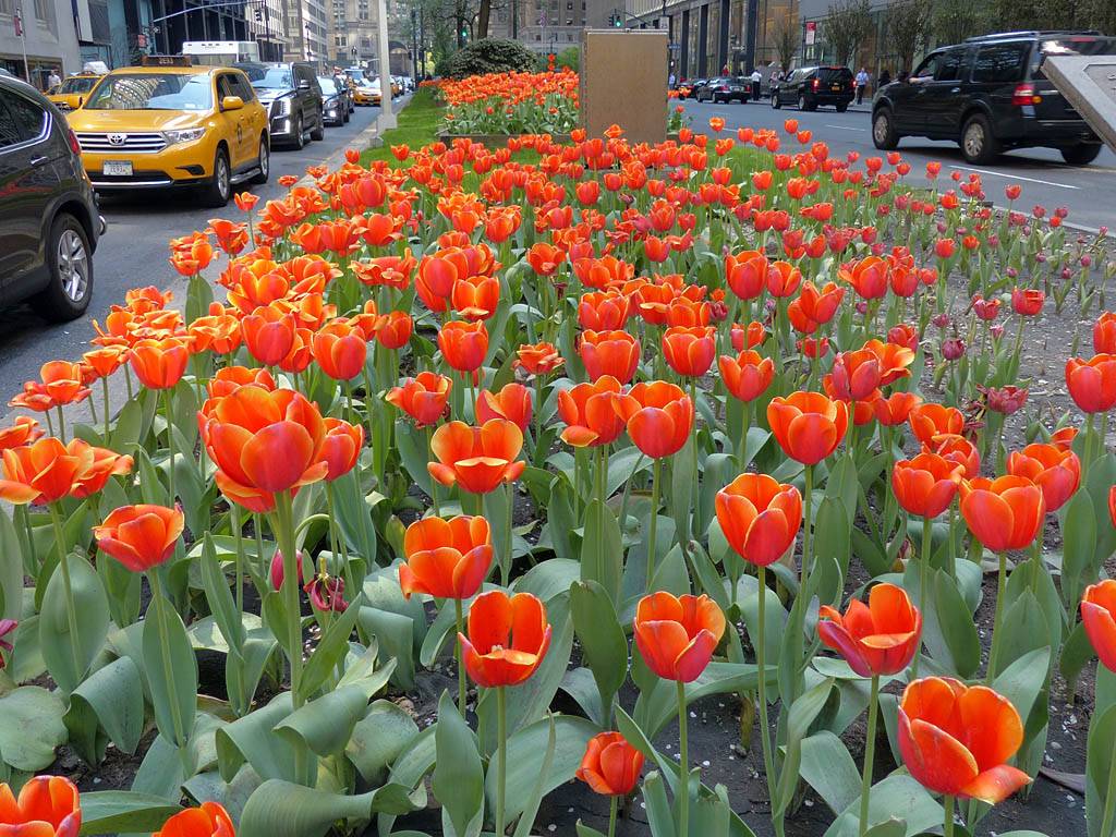 One of many gift shops on 5th Avenue. | A typical 5th Avenue view. | A Sparrow and a Tulip display by the New York Public Library between 40th and 42nd Streets. |
