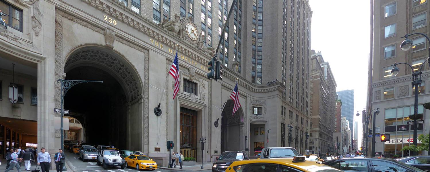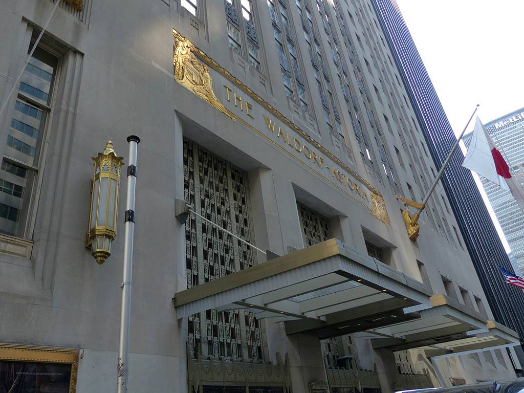 Park Avenue goes right inside the Helmsley Building at 46th Street. | The Waldorf Astoria hotel (Park Avenue entrance). |