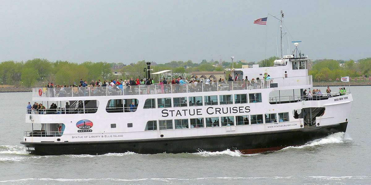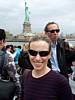 Motoring past Ellis Island. | Passing another Statue Cruises ferry. | Closing in on Liberty Island. | Pamela and the Statue of Liberty. |