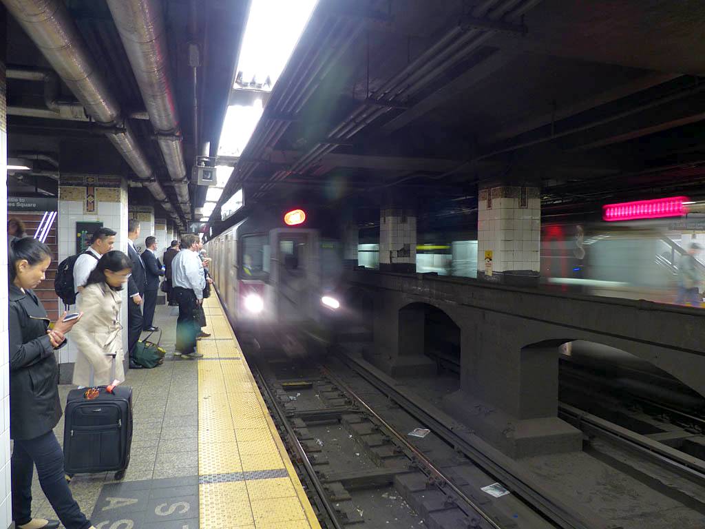 Pamela, Renée and Mike in Grand Central. | Catching a Number 4 Southbound express train. |