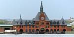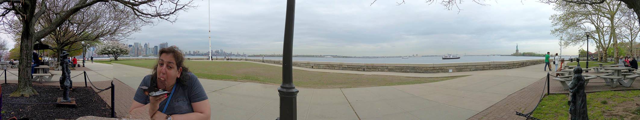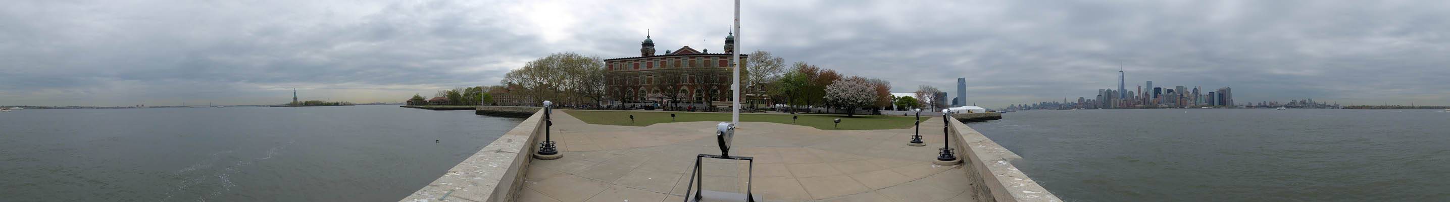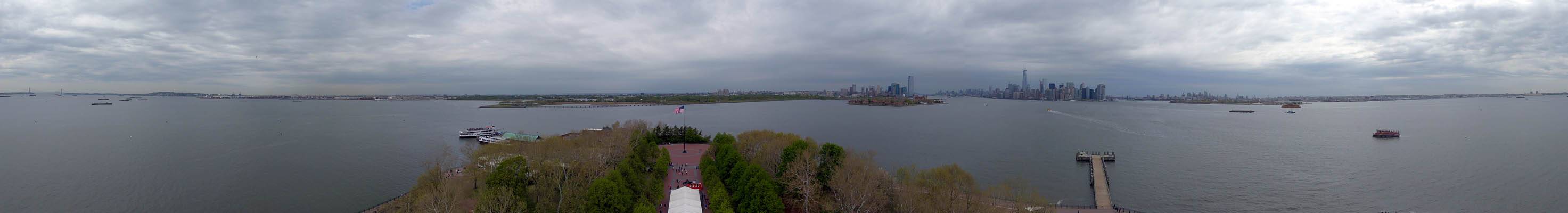 Ice cream break panorama while we wait for the ferry, from Lower Manhattan to Liberty Island. | 360 degree panorama from a platform to the Southeast of the main building. |