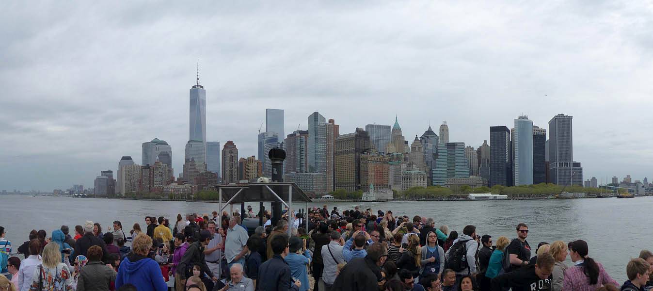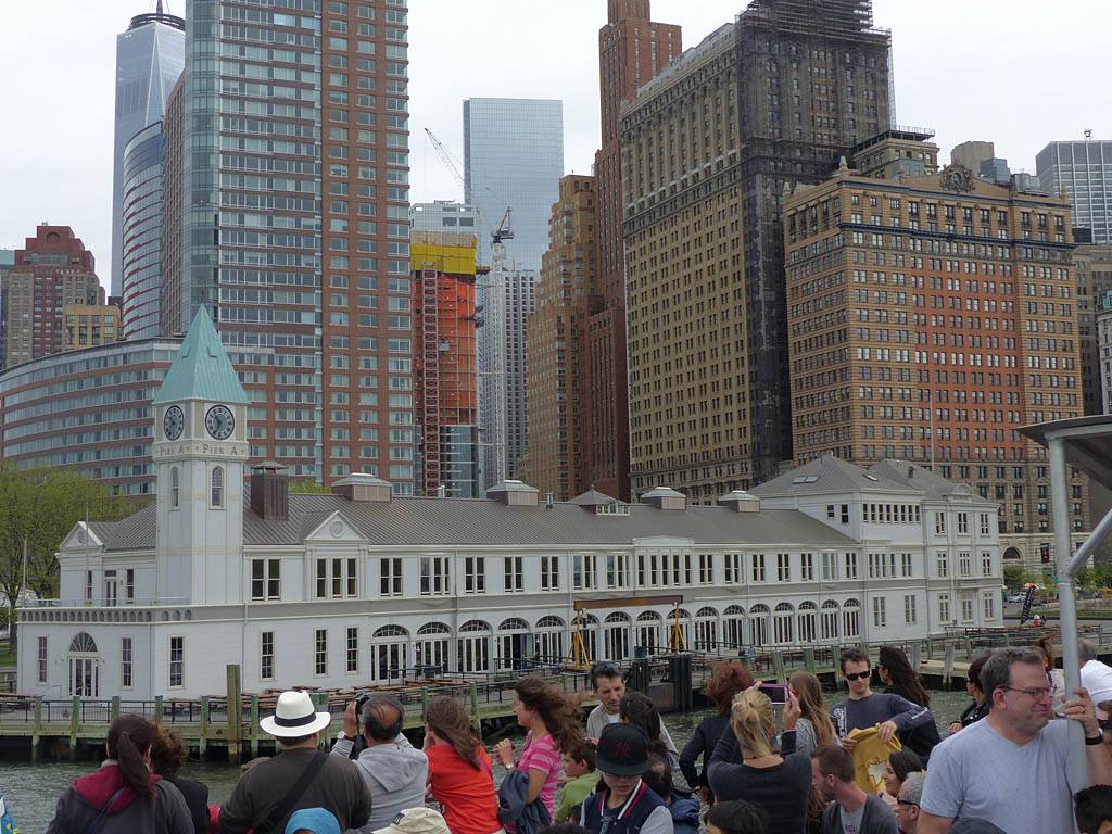 I found Ellis Island rather boring admittedly. We looked around all the museum exhibits and walked through the main hall where the immigrants queued to be processed. It was a nice airy hall full of natural light which I found surprisingly pleasant. We were rather hungry and tired by the end of the tour. We just missed the 2:15PM ferry. However we got ice creams from the café while we waited for the 2:40PM ferry and ate them outside. I also took more pictures of the sublime view. Then we joined the queue and left on the 2:40PM ferry, disembarking back at Battery Park at 2:55PM.