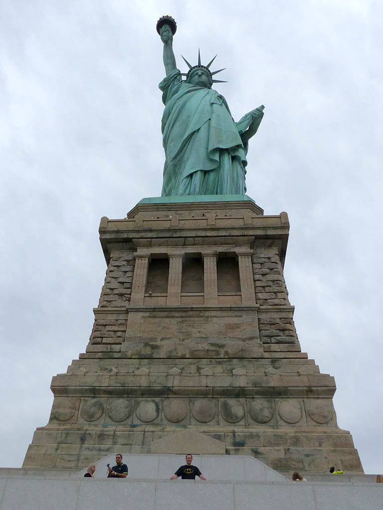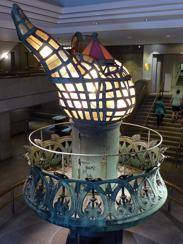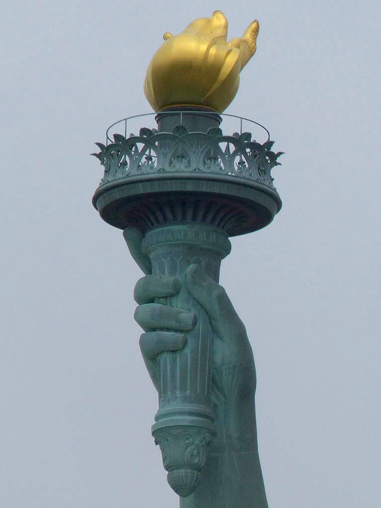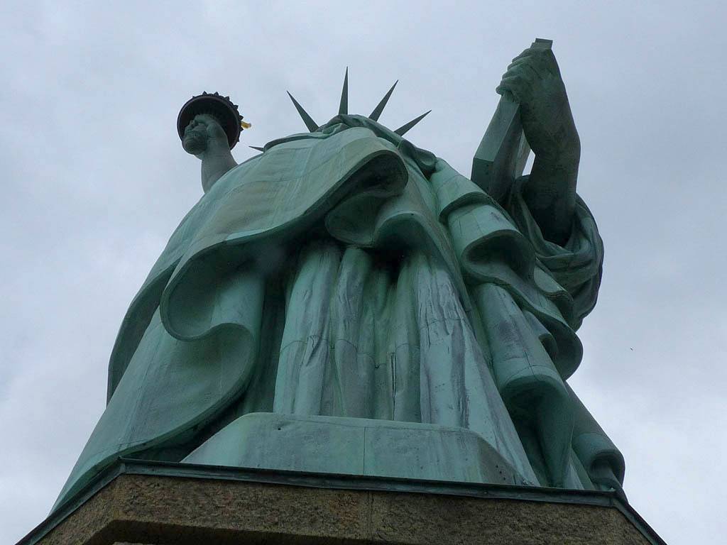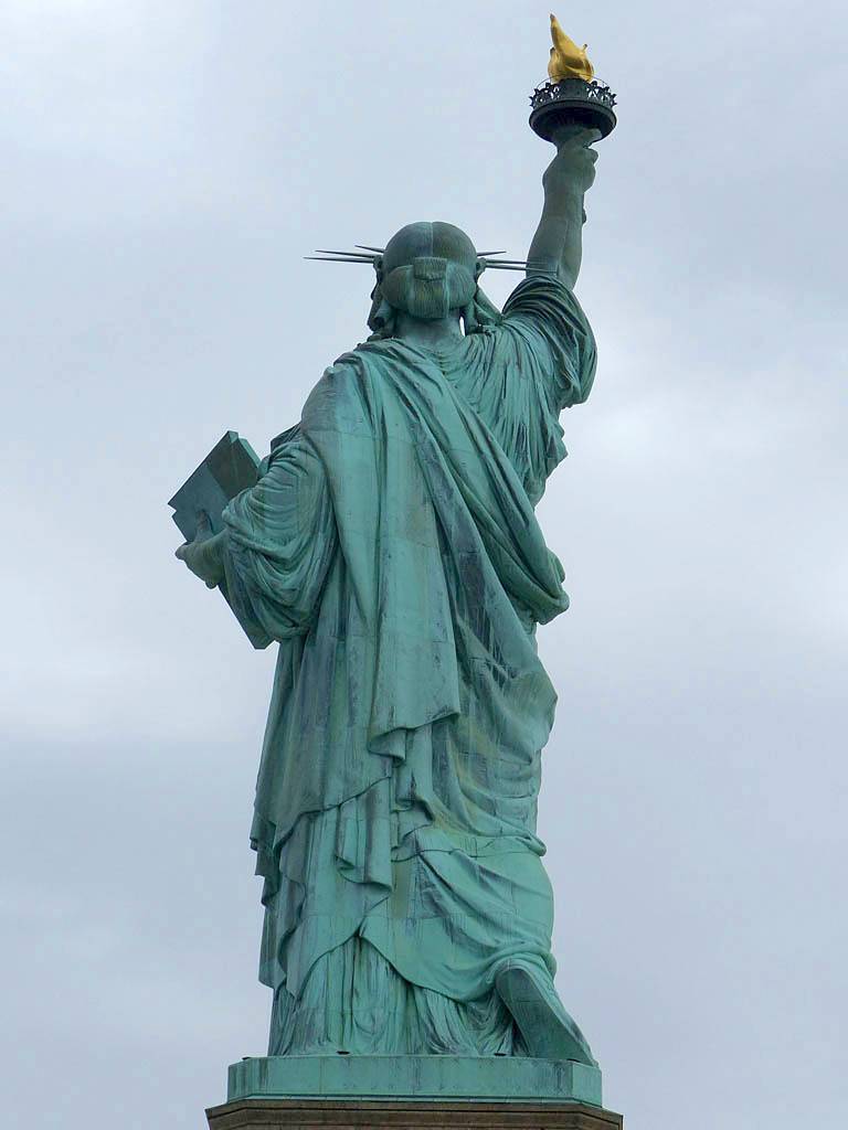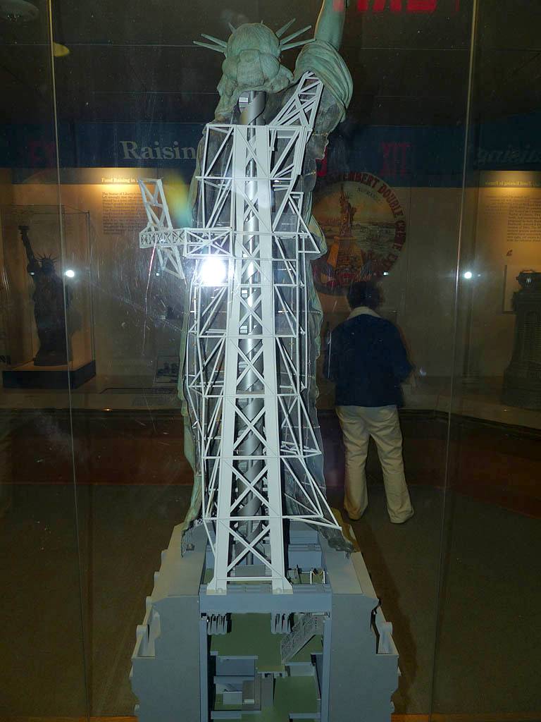 Approaching the Statue of Liberty from behind. | A sample section of the torch platform. | From this angle the crown looks more like a spike through the head... | Inside the pedestal is displayed the old torch that was replaced in 1984 with the present day torch. |