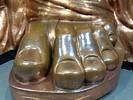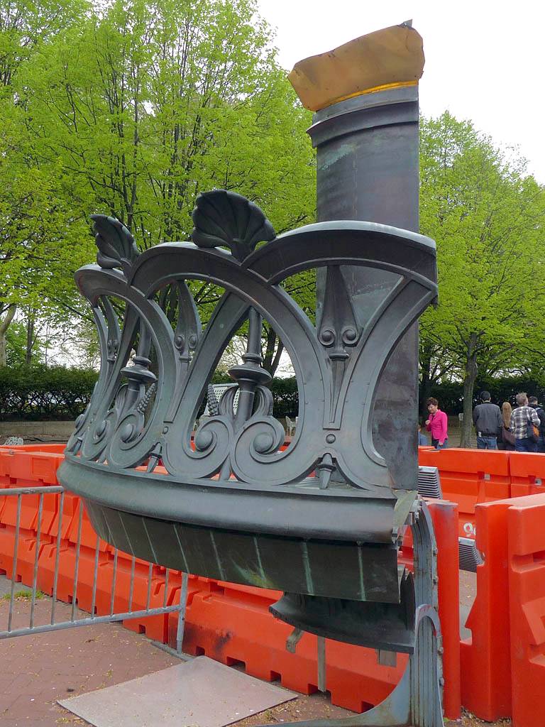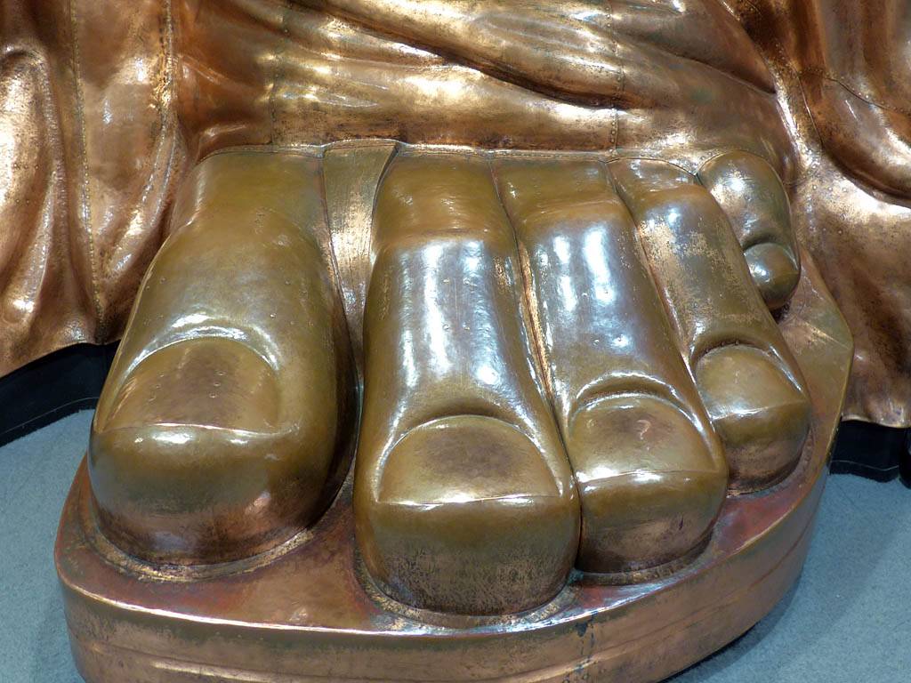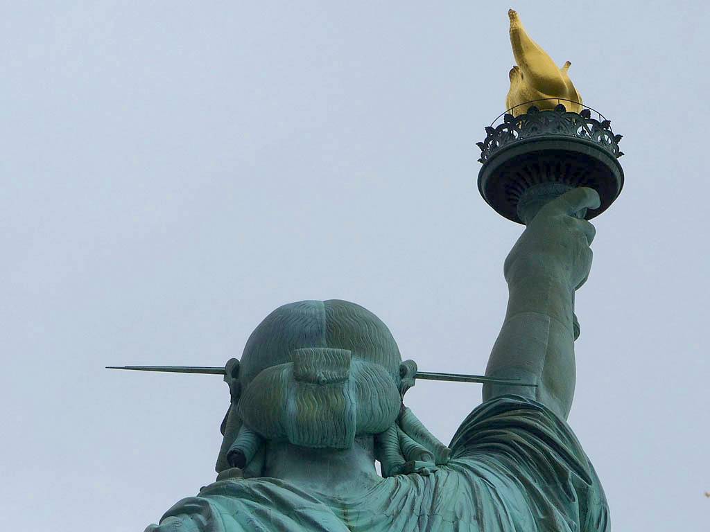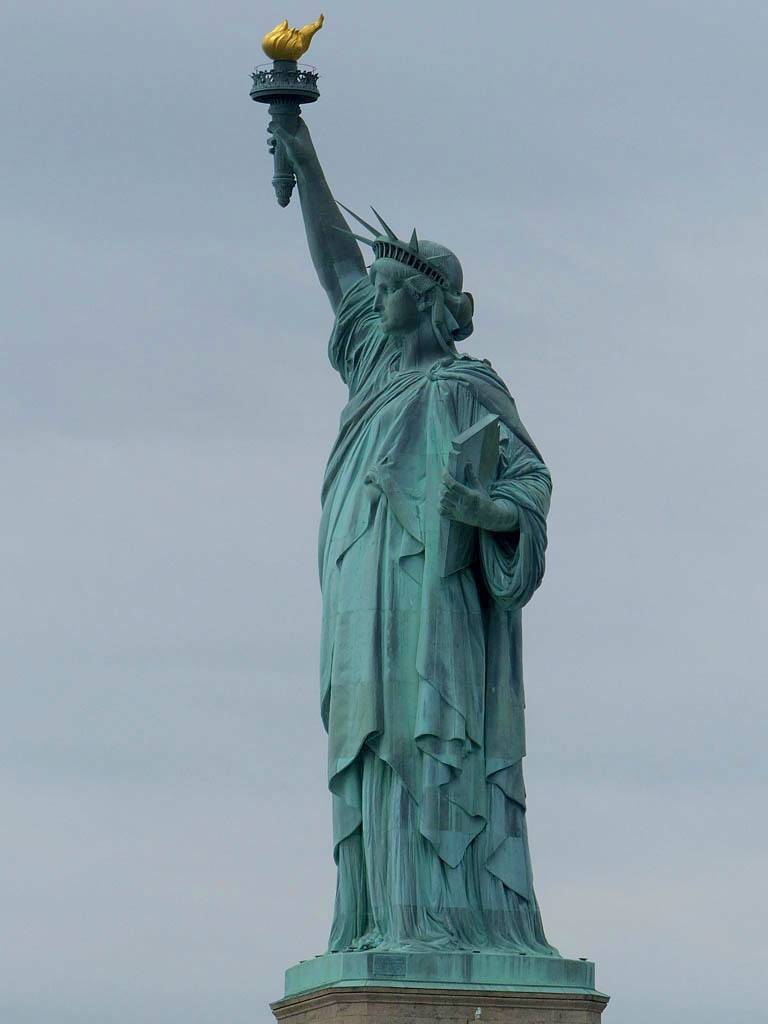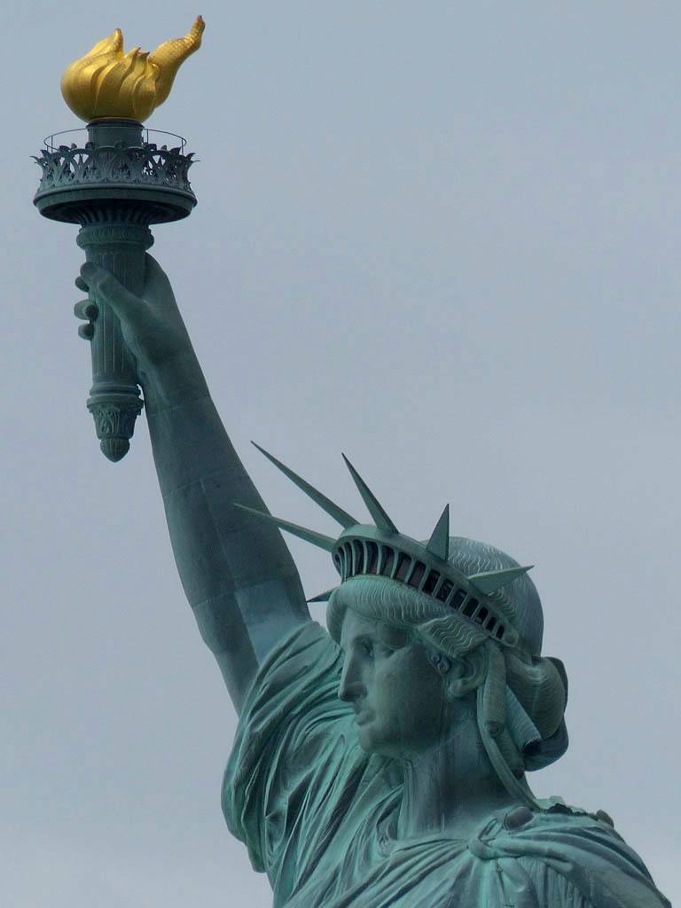 Approaching the Statue of Liberty from behind. | A sample section of the torch platform. | From this angle the crown looks more like a spike through the head... | Inside the pedestal is displayed the old torch that was replaced in 1984 with the present day torch. |
