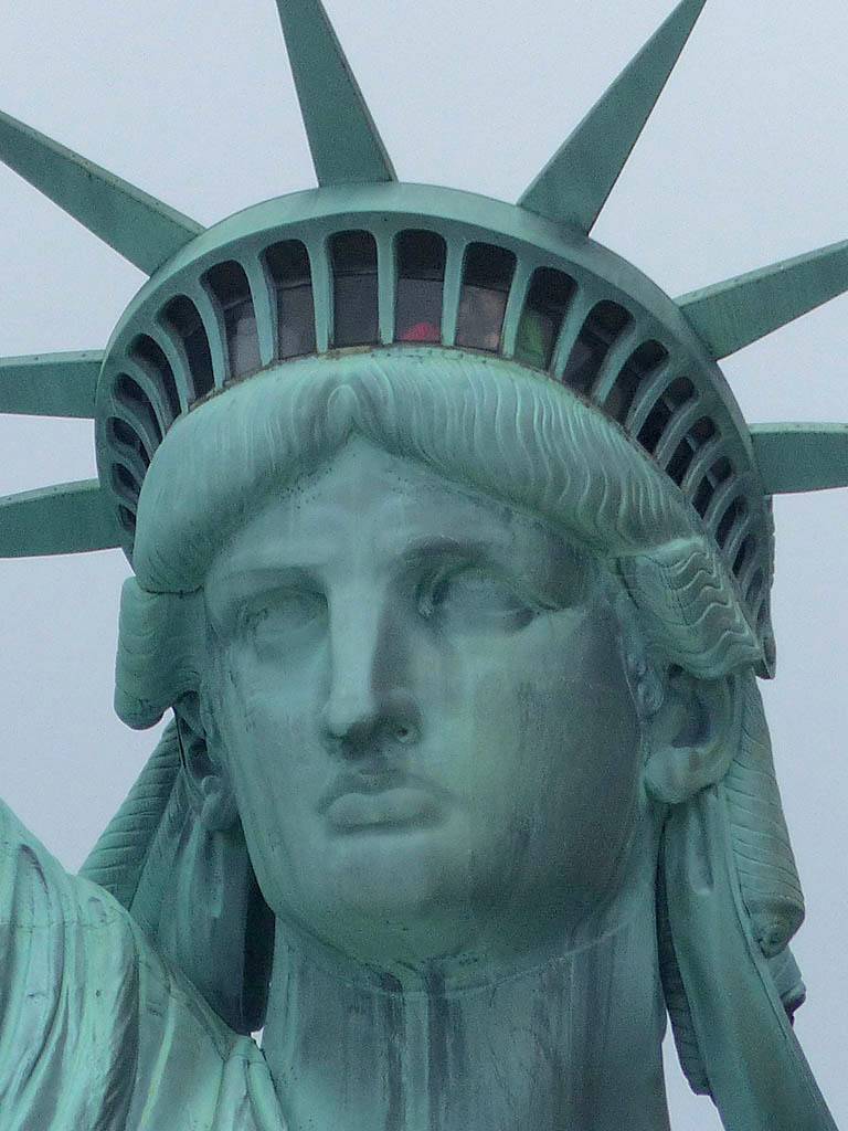 Closeups of the Statue of Liberty as we go around the island to the jeti on the far side of the island. |