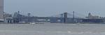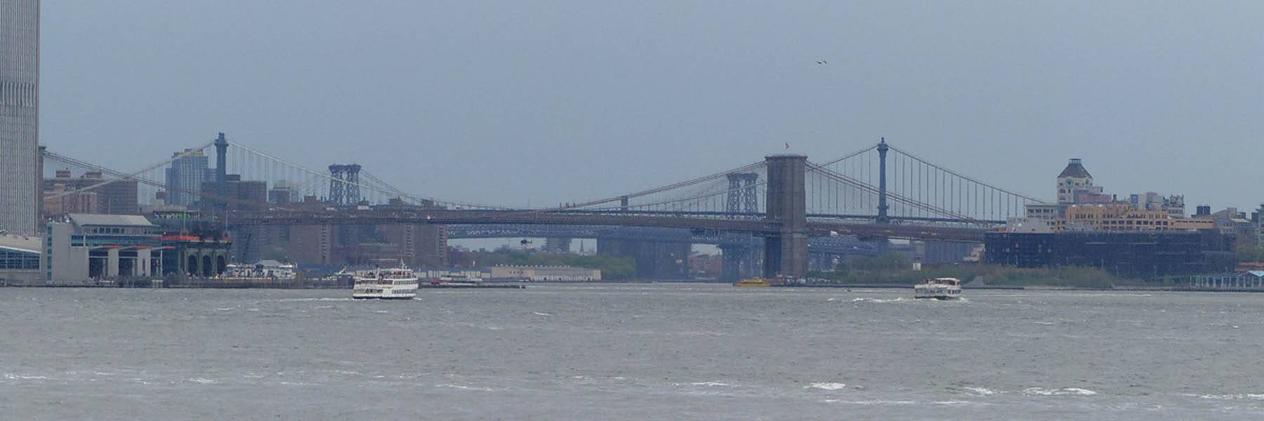 Meanwhile we get good views up the East River to the Manhattan and Brooklyn Bridges. | The jeti on the Southwest side of the island where we moor up. |