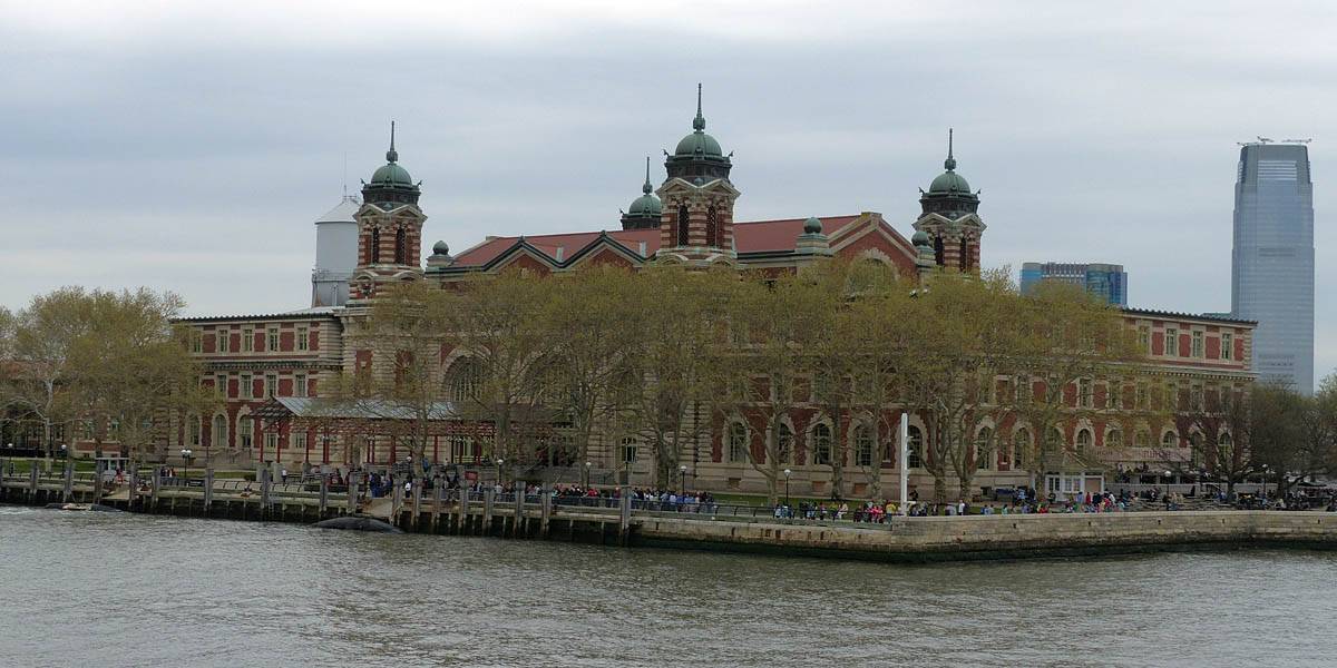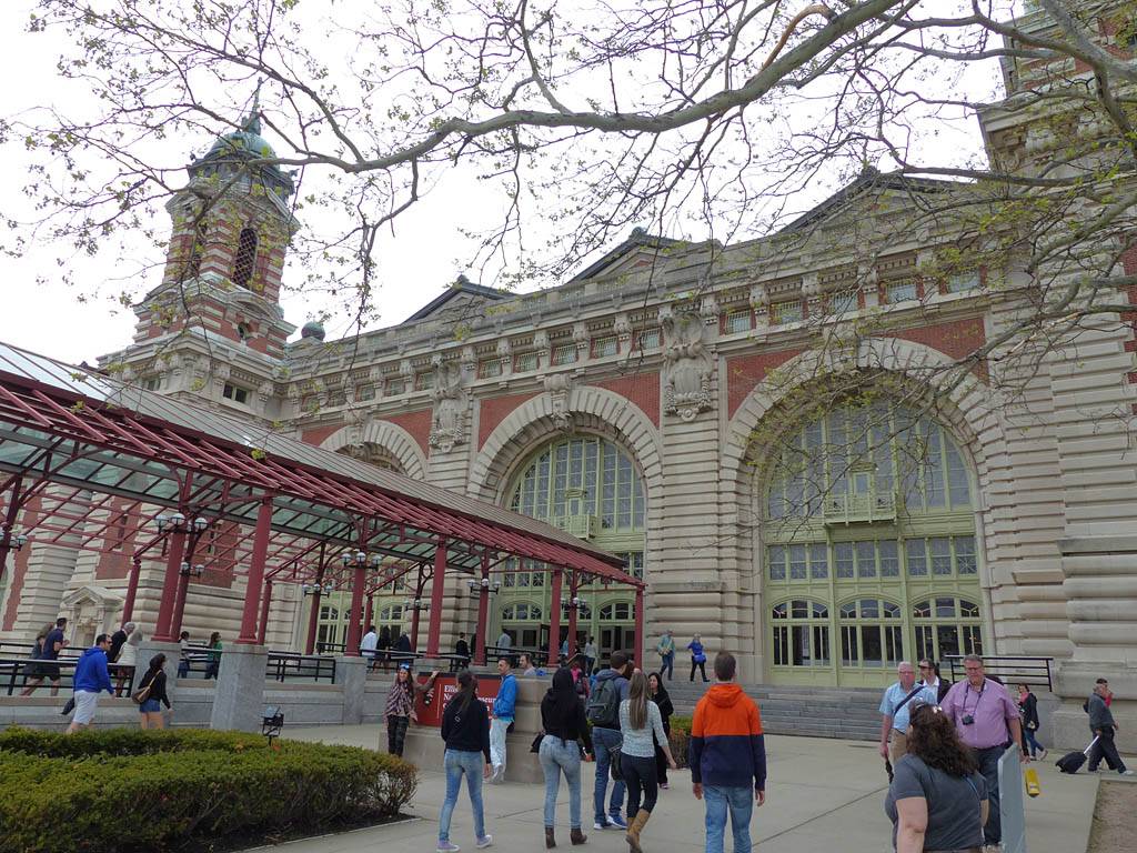 Once on Liberty Island we stowed our bags in a locker by the gift shop. Then we joined another security queue before climbing up many flights of steps to the pedestal. The views up there were great. I took a panorama and many other pictures from the pedestal. Despite some very light rain the visibility was excellent with commanding views of Lower Manhattan, ellis island and surrounding areas. Once done we backtracked down to the platforms below on the site of an old star shaped fort. Then after more photo opportunities we continued down to the museum before exiting to the gift shop. We finished and collected our bags at 12:25PM. We queued and got on the ferry quite quickly and departed for Ellis Island at 12:40PM. By now the weather had thankfully dried out.