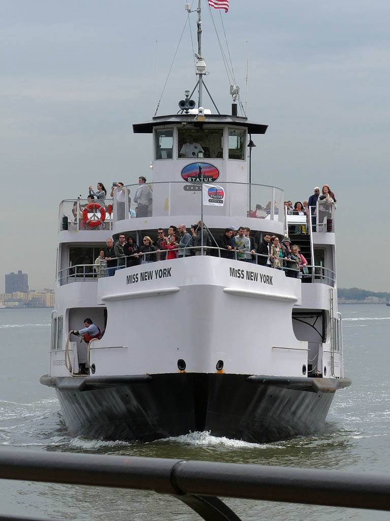 Views of the Freedom Tower and the Empire State Building from Ellis Island. | The ferry arriving to take us back to Battery Park. |
