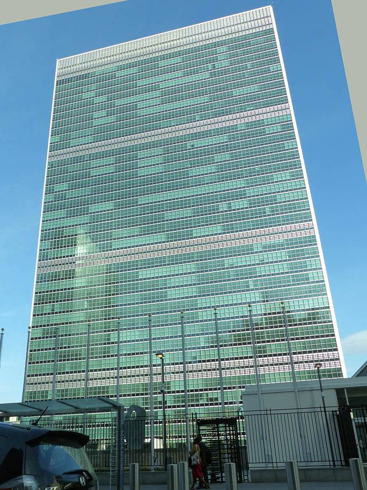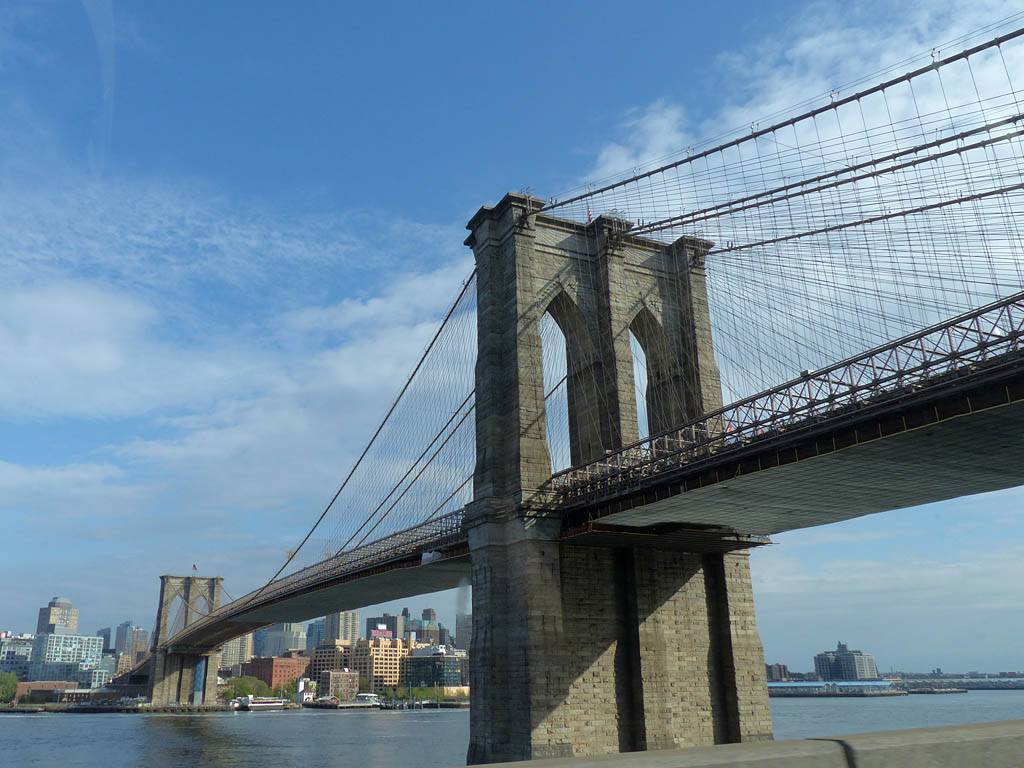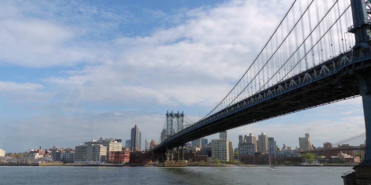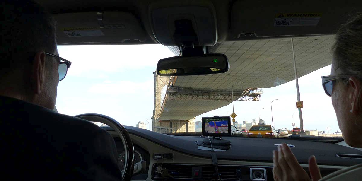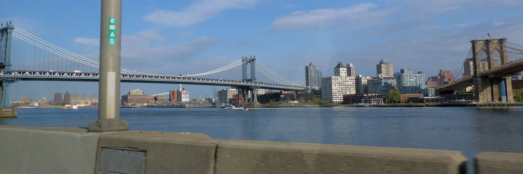 Driving under the Brooklyn Bridge. | Brooklyn Bridge. | Manhattan and Brooklyn Bridges. | Passing the Manhattan Bridge. | Driving along the FDR. Of course there was a big traffic jam just round the corner... | The United Nations Headquarters building at the end of 42nd/43rd Streets . |