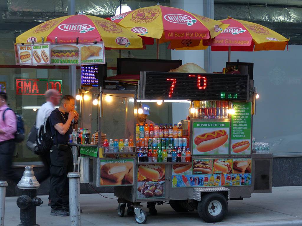 This hot dog cart on the corner of 47th Street and 5th Avenue sold me stale pretzels! :( |