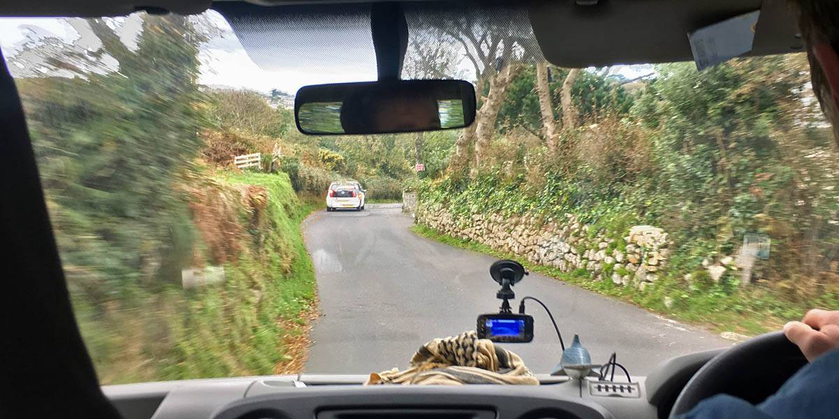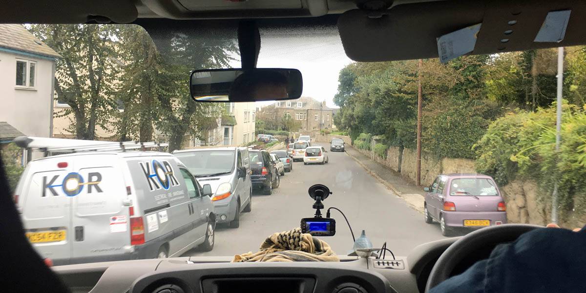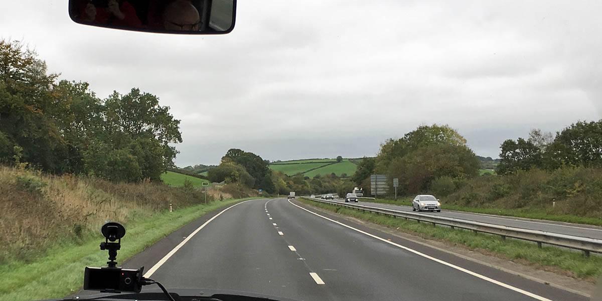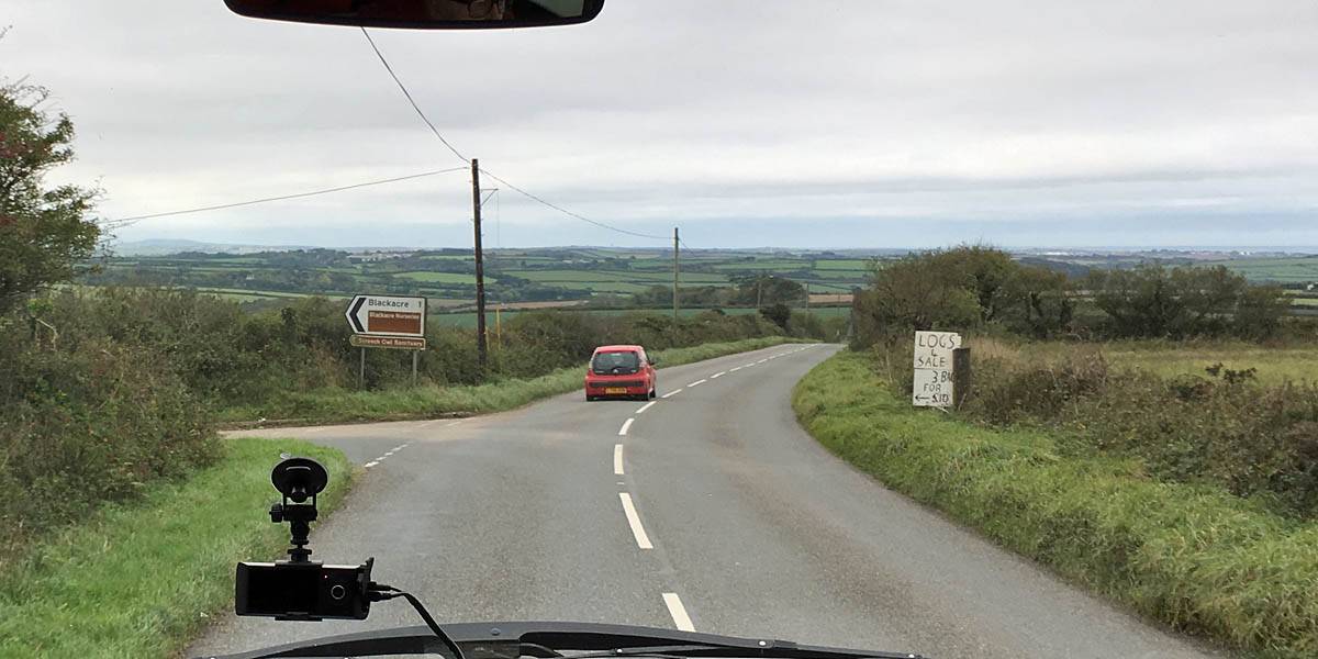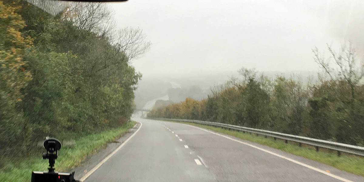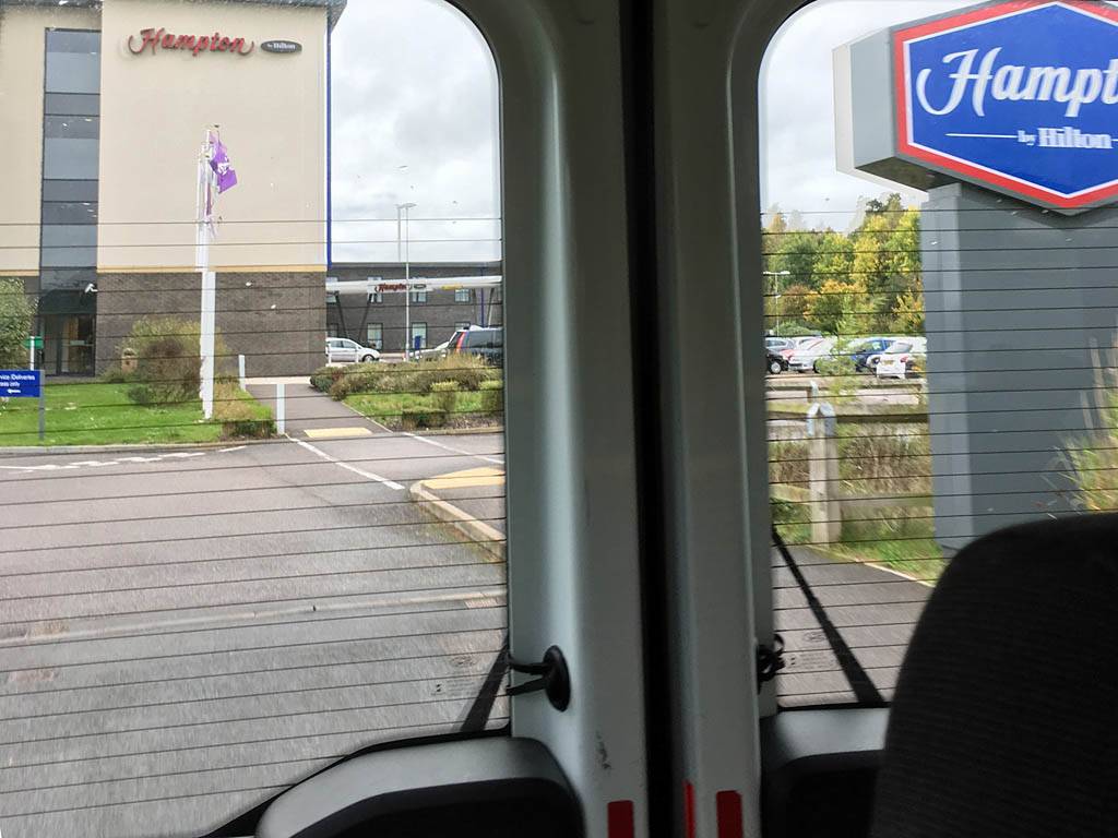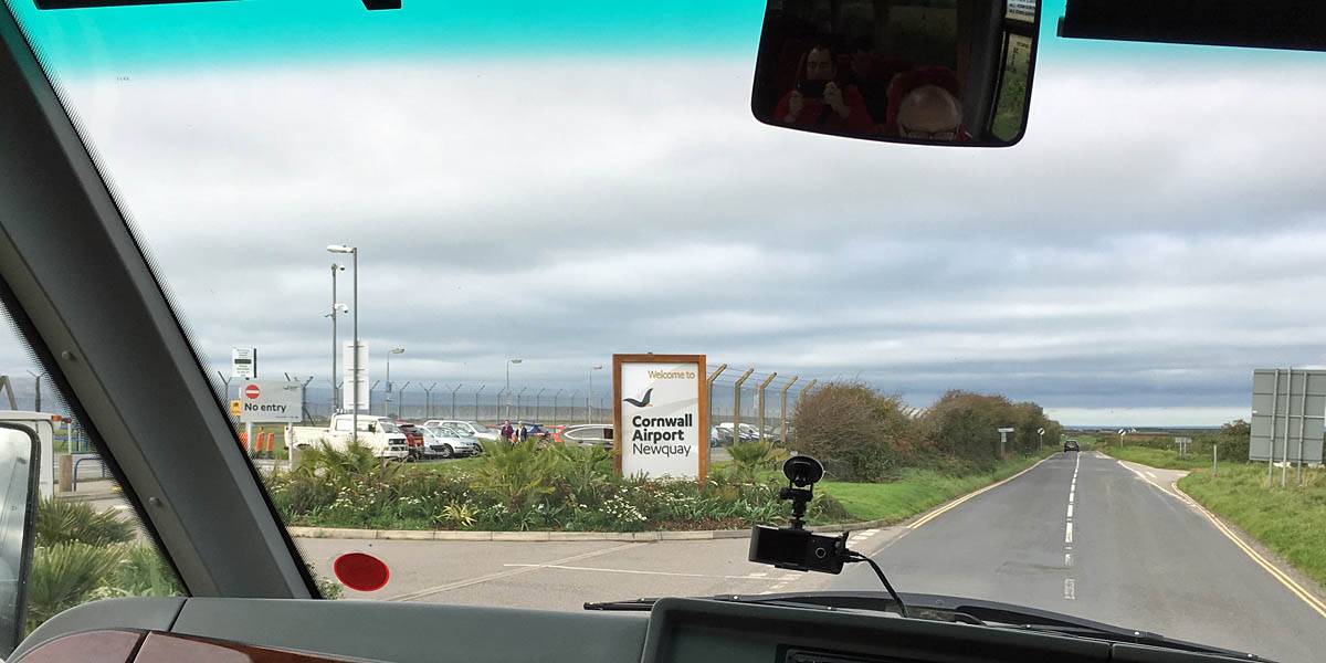 Leaving The Hampton on the shuttle bus to the airport. | The drive from Exeter to Newquay. Glad the drizzly hill fog near Dartmoor and Bodmin cleared to clearer air nearer Newquay. | Arriving at Newquay airport. |