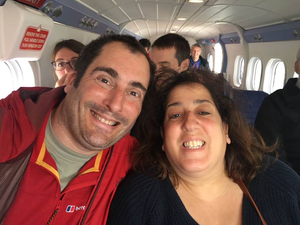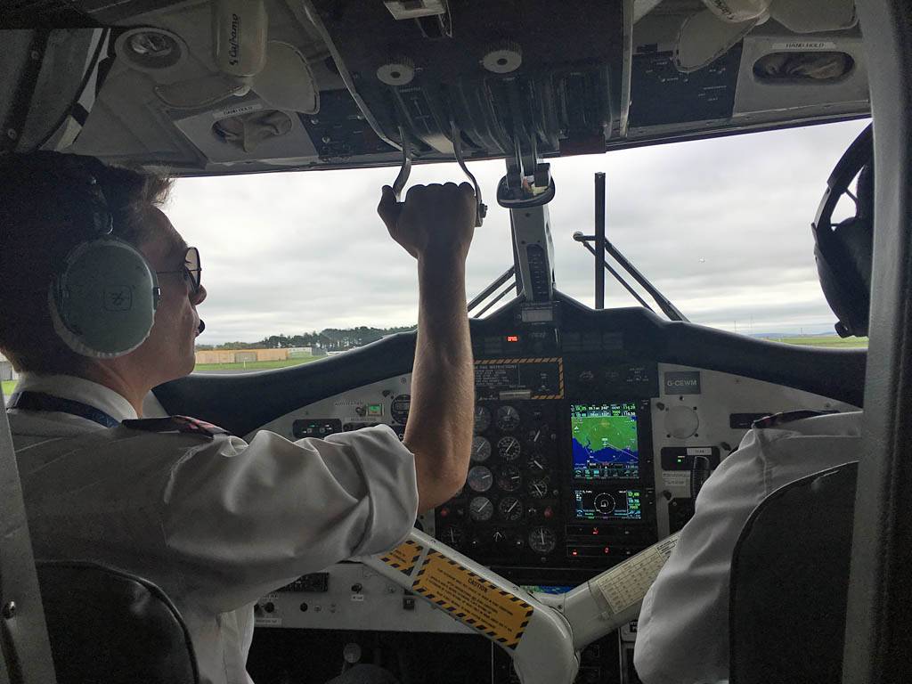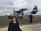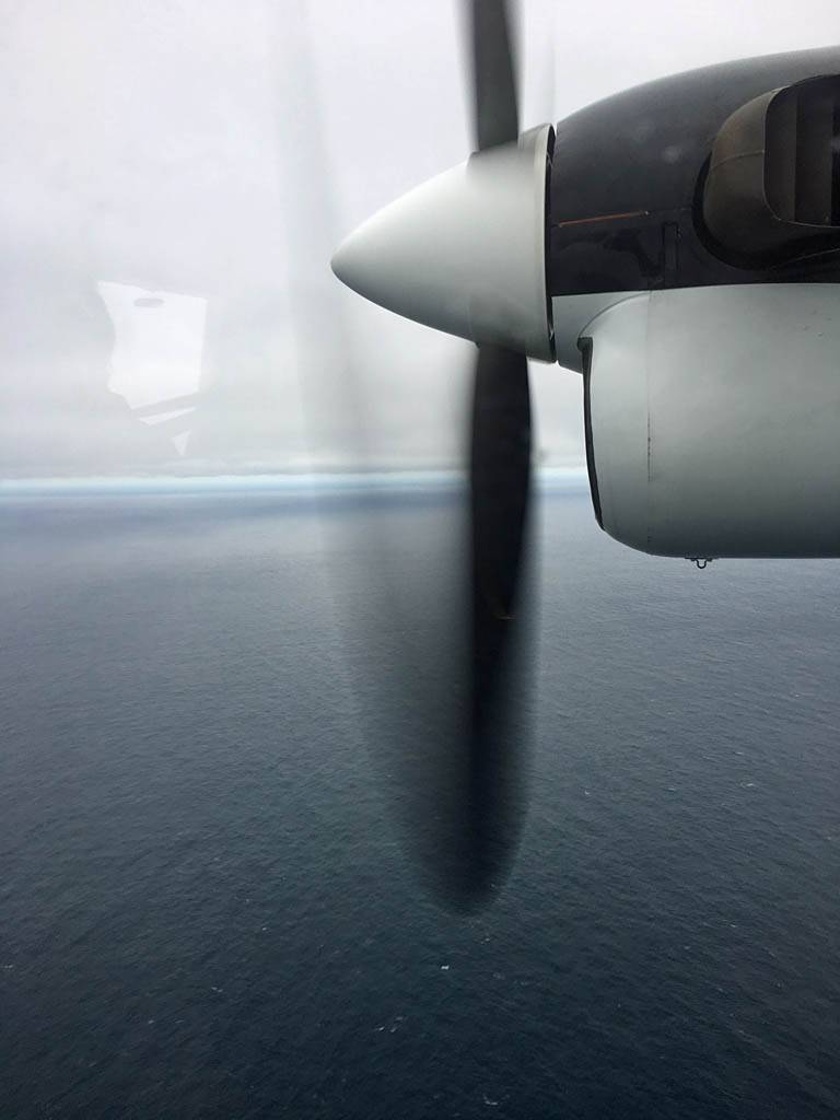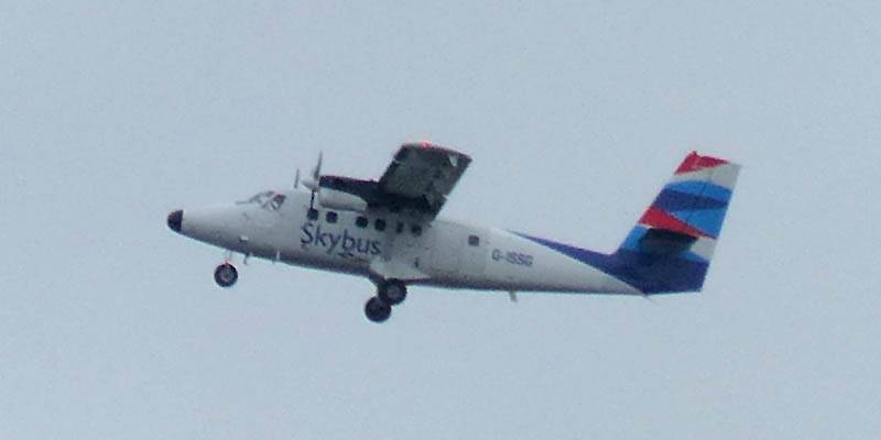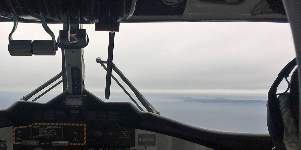 We boarded an Islander Twin Otter DHC-6 at 1:20PM. We grabbed the front seats right behind the cockpit and had great views of the propellors and the pilots at work. They powered up on time at 1:25PM. It was a lovely smooth flight. We were soon above the low cloud and at just 4000 feet it seemed more like 30,000. I could see below us a glory. Too soon it was time to descend through the cloud layer to see the sea below and the Isles of Scilly come into view. We got a great pilot's eye view of the runway as we landed just before 2PM.
