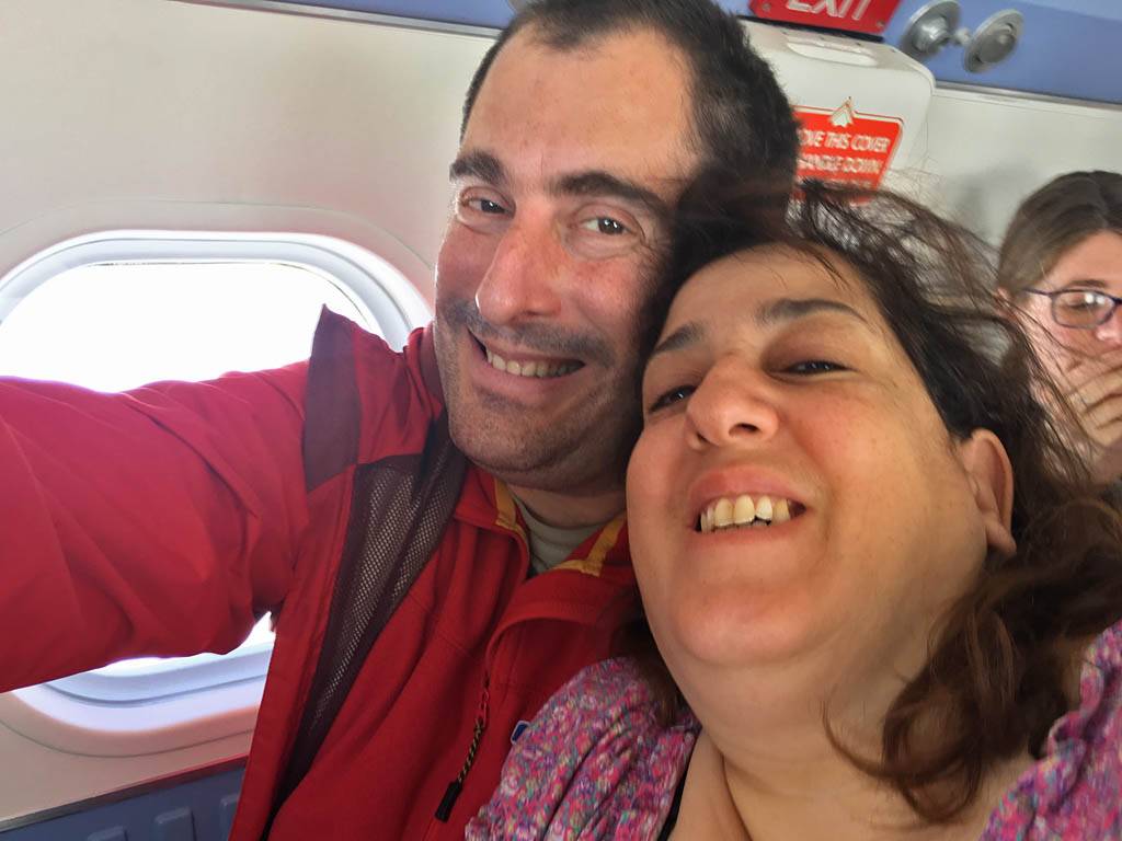 It appears our flight was at 13:25 not 11:50. So we had over an hour to wait for checkin to open. I updated Bellrock with the latest flight time. Skybus kindly gave us £10 vouchers again for lunch so we went and bought some sandwiches, crisps and a cookie. We ate while waiting for checkin to open and drunk the drinks that we bought with the last vouchers in Exeter. Checkin opened at 12:25PM and by 12:45PM we were past security and waiting for the gate to open. Then at 1:10PM we got called forward to view a safety briefing on a screen before boarding.