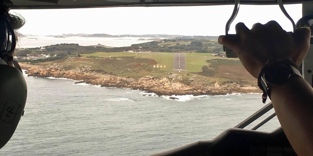 On final approach. | At last we set foot on Scilly! Better late than never... |