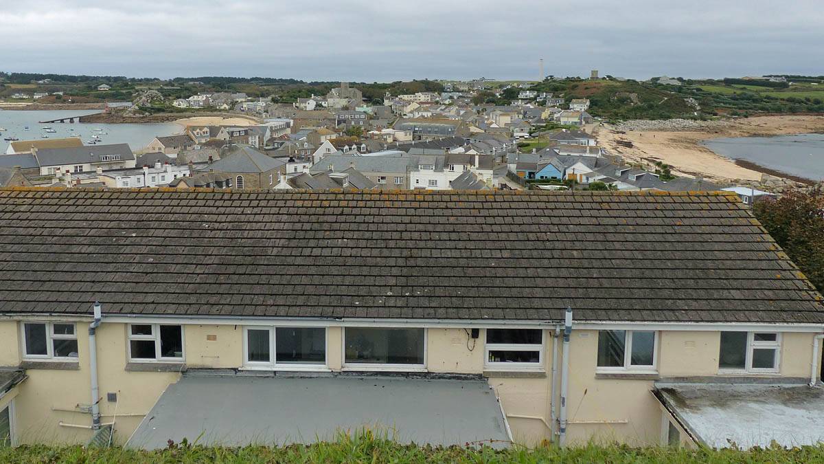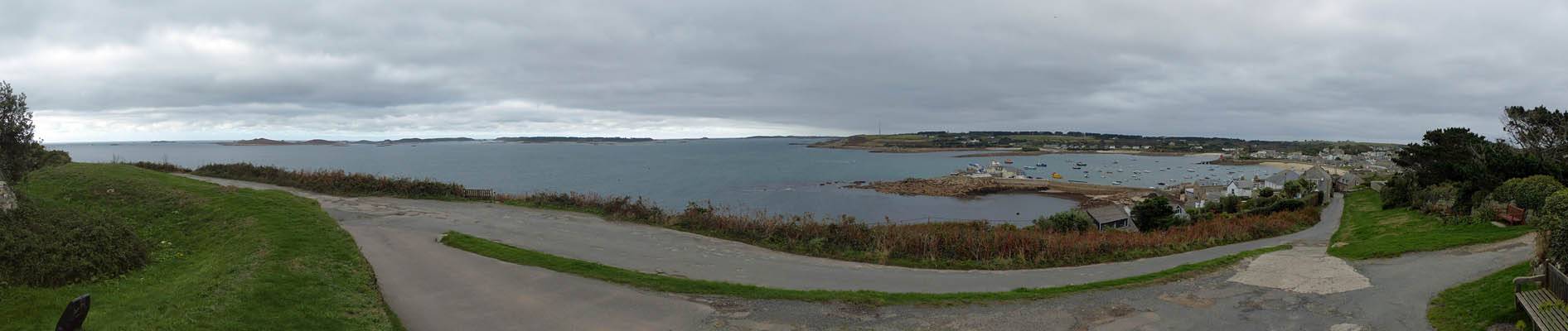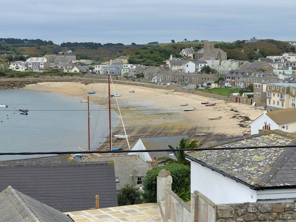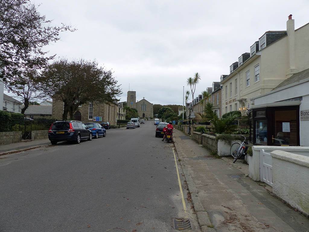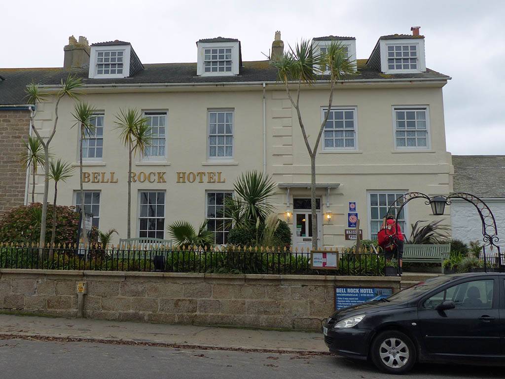 The Bell Rock Hotel from outside. | Looking up and down Church Street. | Porthcressa Beach. | Looking Southeast along the coast towards Peninnis Head. |