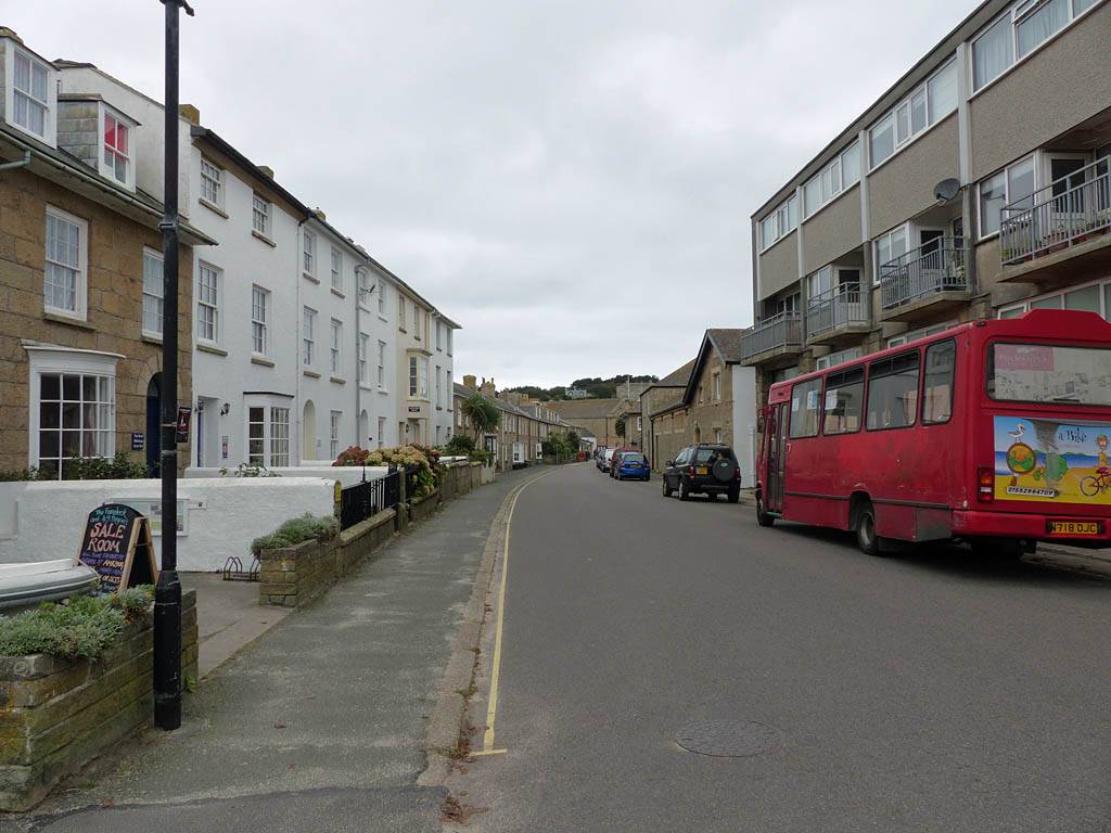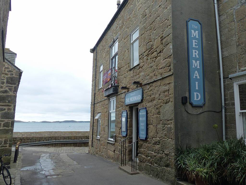 Looking across to Porthmellon Beach. | Panorama from by the pier building. | The lifeboat station between Town Beach and Porthmellon Beach. | View from the Western end of Town Beach. | The Atlantic Inn, another potential dinner place. |