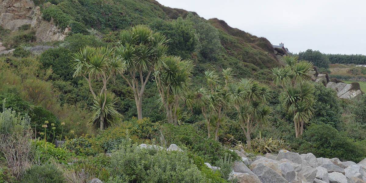 More tropical looking Scilly plants. | Garrison Lane. | More tropical looking Scilly plants. | Looking down towards the harbour from Garrison Hill. | A Collared Dove. |