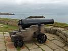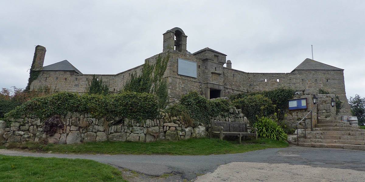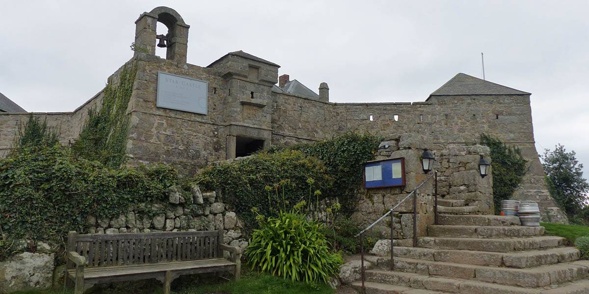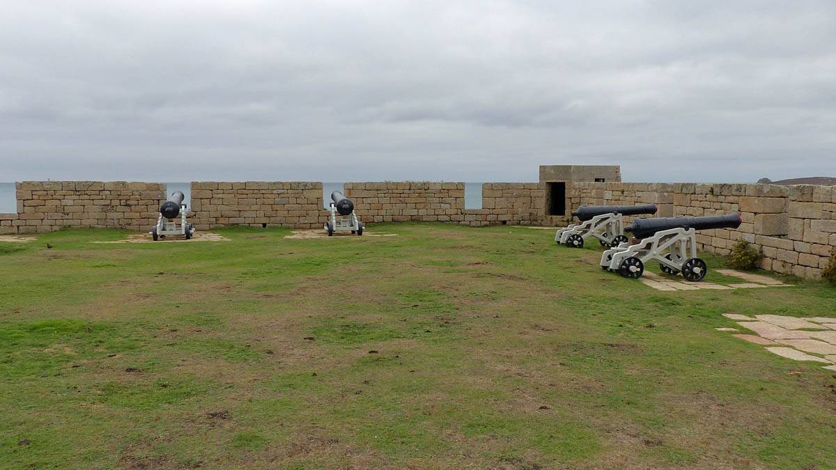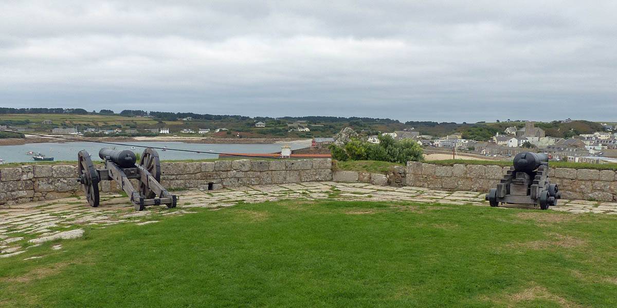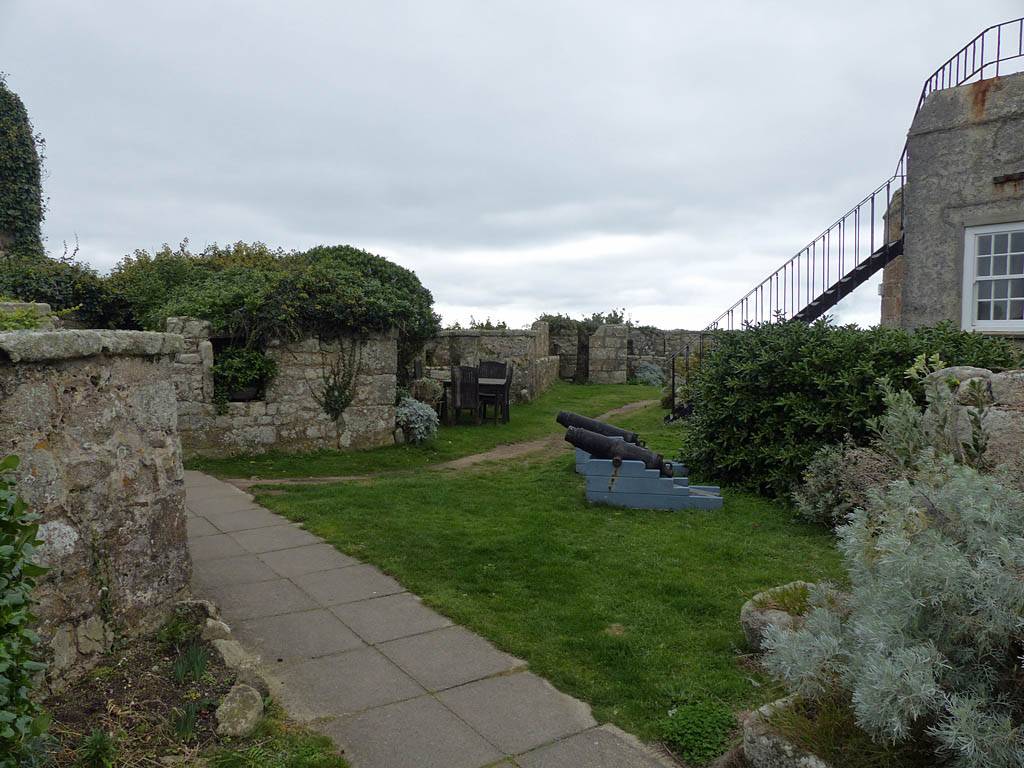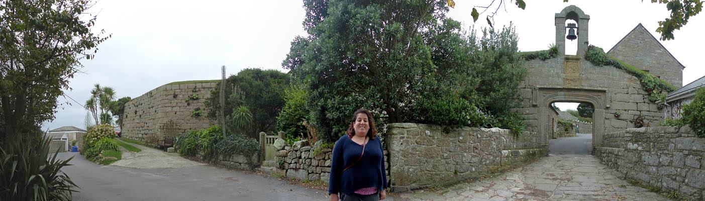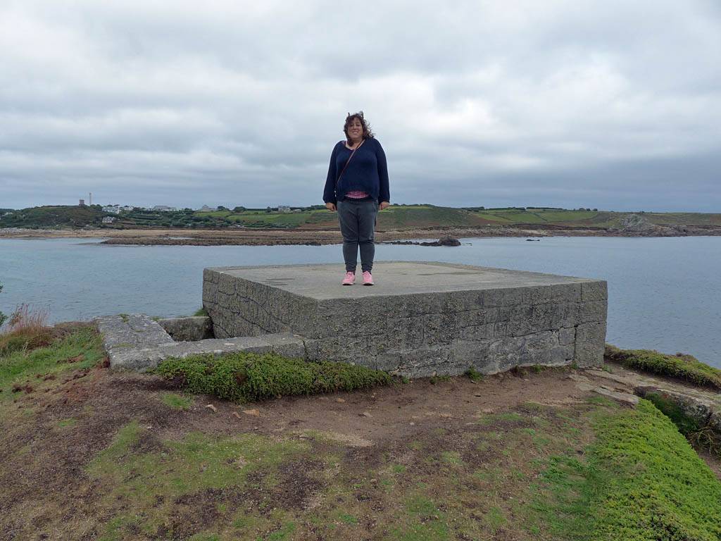 We started going anti-clockwise around the garrison walk. Up garrison lane we went first, pausing at the Star Castle and had a look around. Renée had a lemonade in the bar in the dungeon. Then we continued around route, taking in the views from the batteries with cannons. Towards the end in particular it was a great view back to Porthcressa Beach.