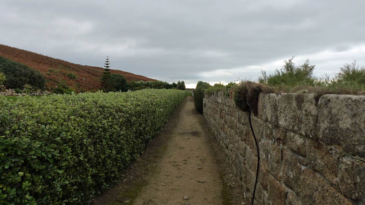 Setting off back towards Hugh Town. | Succulent plants growing on a wall. | The path back to Hugh Town along the Eastern side of the Garrison Walk. | Views of Porthcressa Beach and Hugh Town from Upper Broome Platform. |