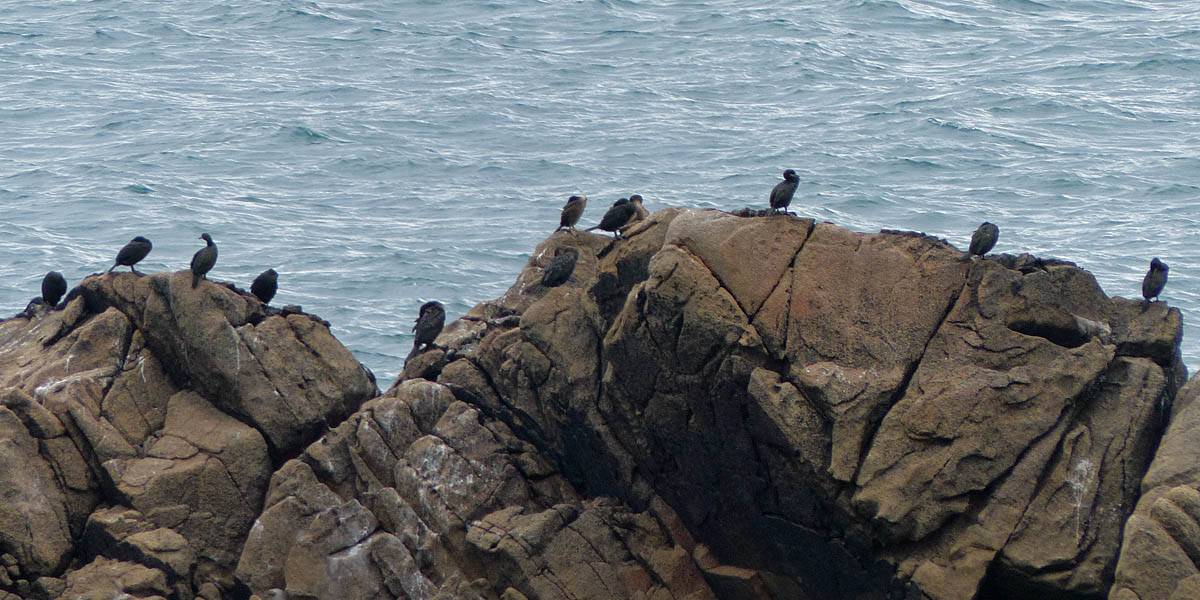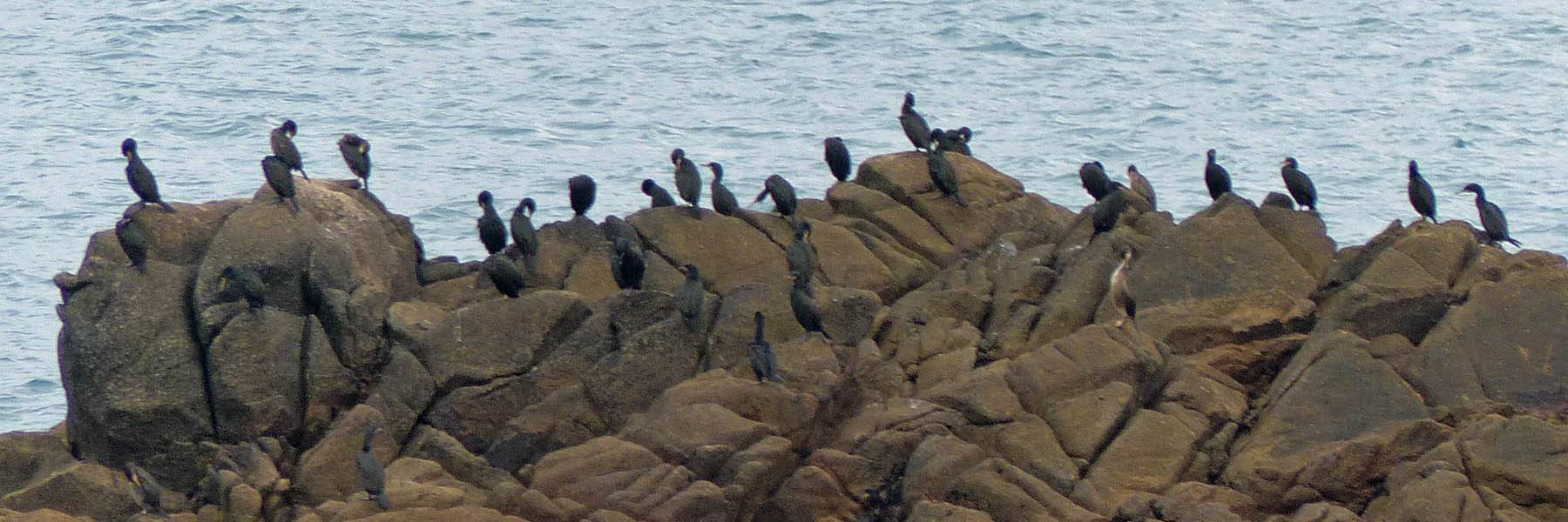 Female Blackbird. | Morning Point Battery. | Looking at the rocks covered in Shags / Cormorants. |