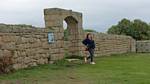 Renée just inside the entrance of the Woolpack Point Battery. | Woolpack Point Battery. | Female Blackbird foraging. | Exploring the structures at Woolpack Point. |
