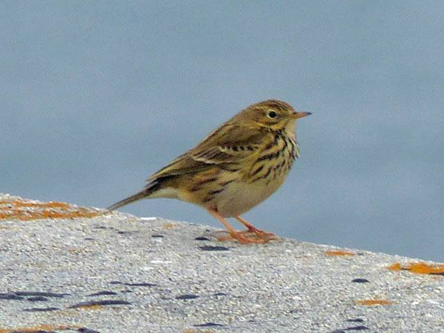 Meadow Pipit. | Looking East the rocky Peninnis Head can be seen. | Some nice 'old man's beard' growing on the wall. | A Common Gull resting on a rock. | My only shot of a fast moving Wren darting around the bushes. |