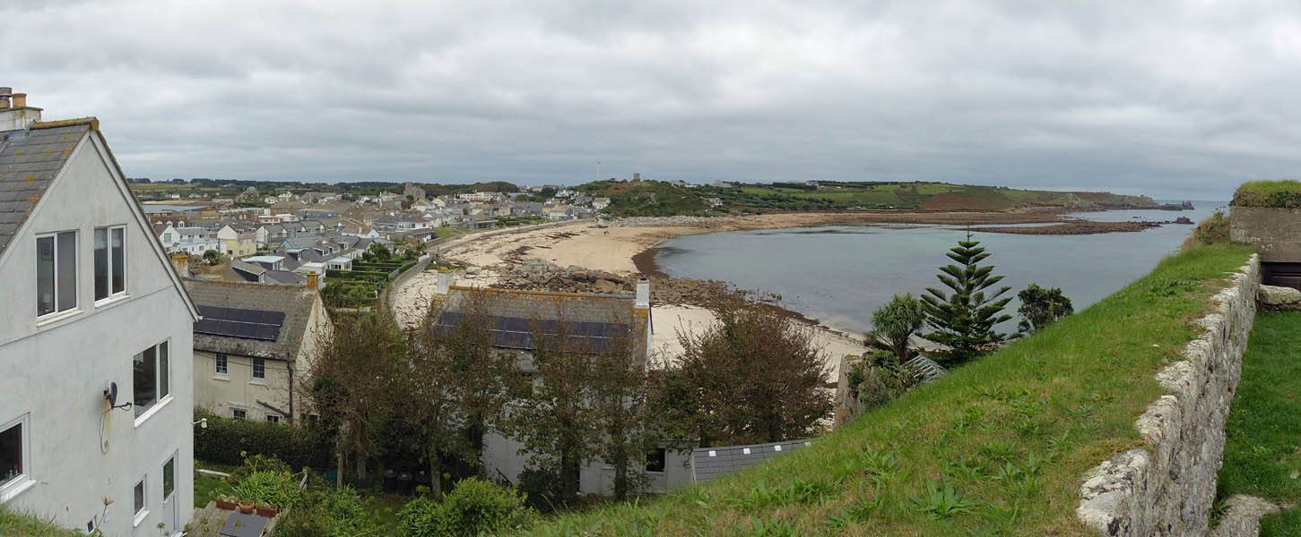 Garden Battery view over Hugh Town and St. Mary's Pool. | Scilly flora. | Higher Battery and a good view of Town Beach. |