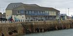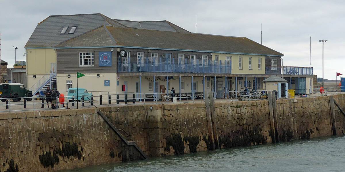 Views across the harbour from the pier. | Looking at the main pier building and its clock from the short Southern arm of the pier. |