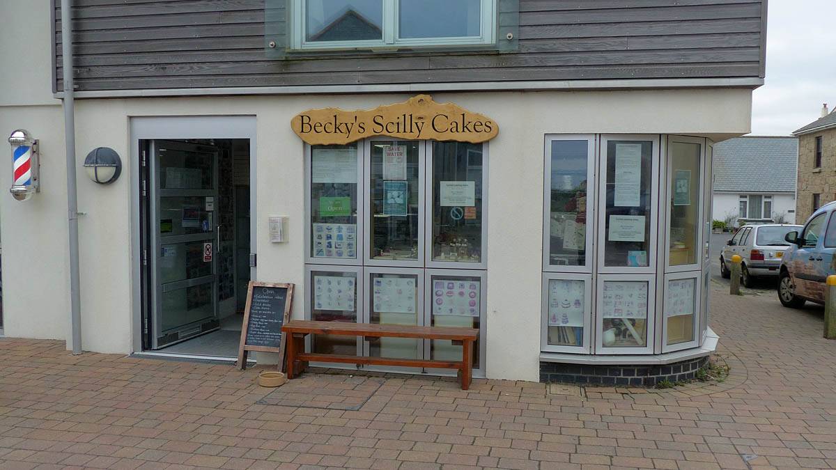 Walking back towards Porthcressa Beach along Buzza Road where the library and Becky's Scilly Cakes are. | Inside Becky's Scilly Cakes. | Dibble and Grub was another food option. |