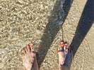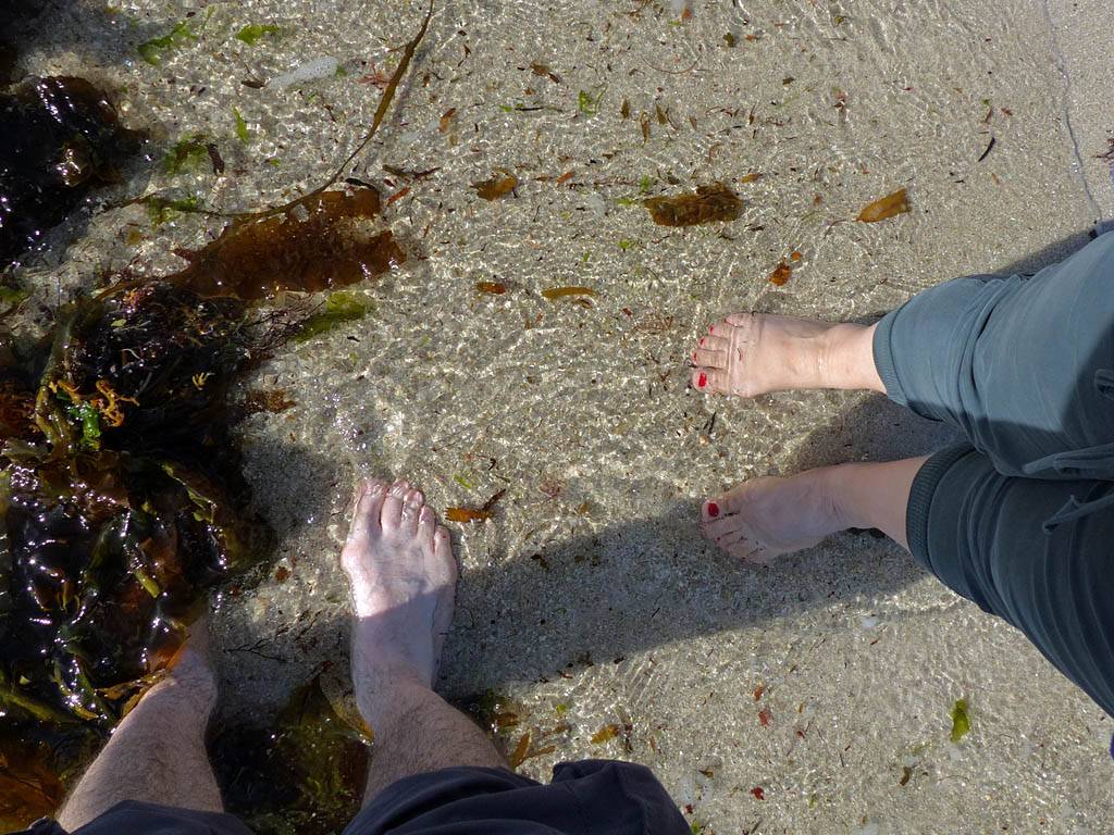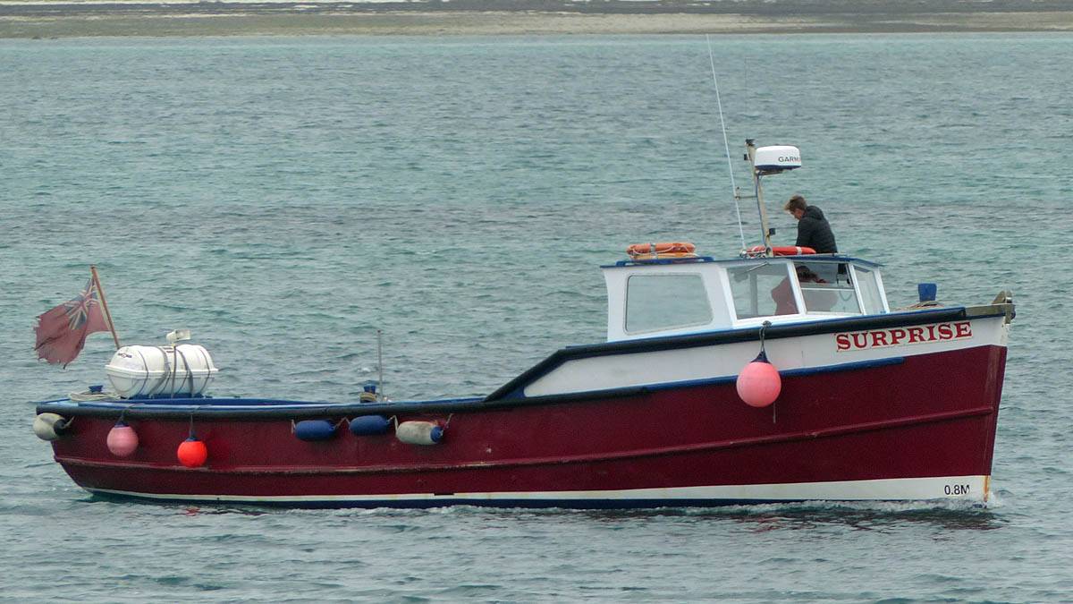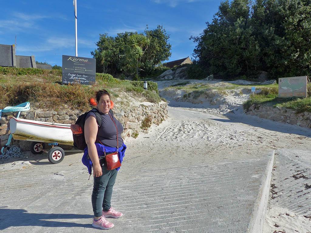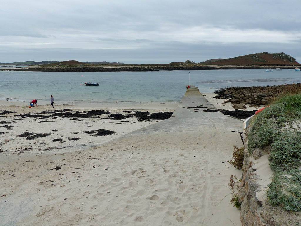 The tide was much lower now as we approached low tide. Renée sat on the ramp while I wandered to the water's edge and back. We chatted to some bird watchers and waited while more and more people gathered for the return boat. The boat to Tresco arrived at 4:10PM. As that boat departed 5 minutes later the Surprise boat arrived at 4:15PM.