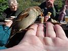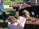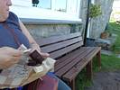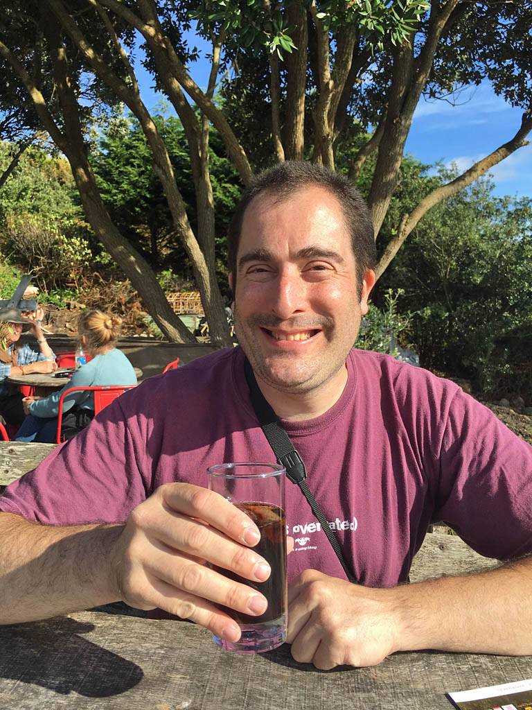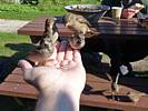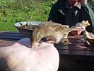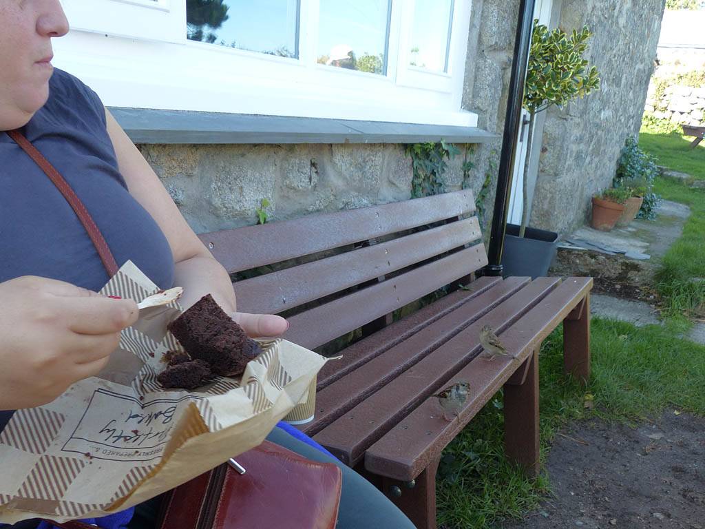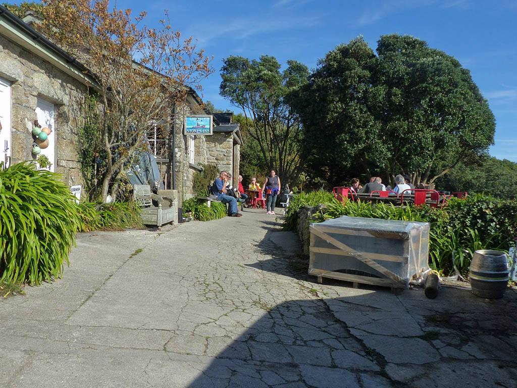 Just up the hill was the Seven Stones Inn which seemed rather nice. We went in and bought a Baileys and a Disarrono and Coke. The ceiling had lots of branches and lights which was weird but nice. We took our drinks outside and sat in the warm sunshine enjoying the spectacular view from the benches. The Sparrows here were also very tame, landing right next to us on the table and nearly letting us touch them. Like at the bakery, they were after food so once they realised we didn't have any they lost interest a bit although they did come back from time to time to make sure. Some of the people from the boat were also present and we said hello.