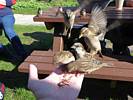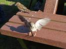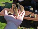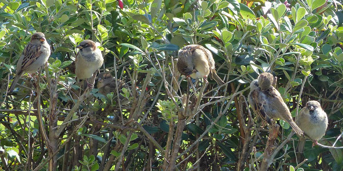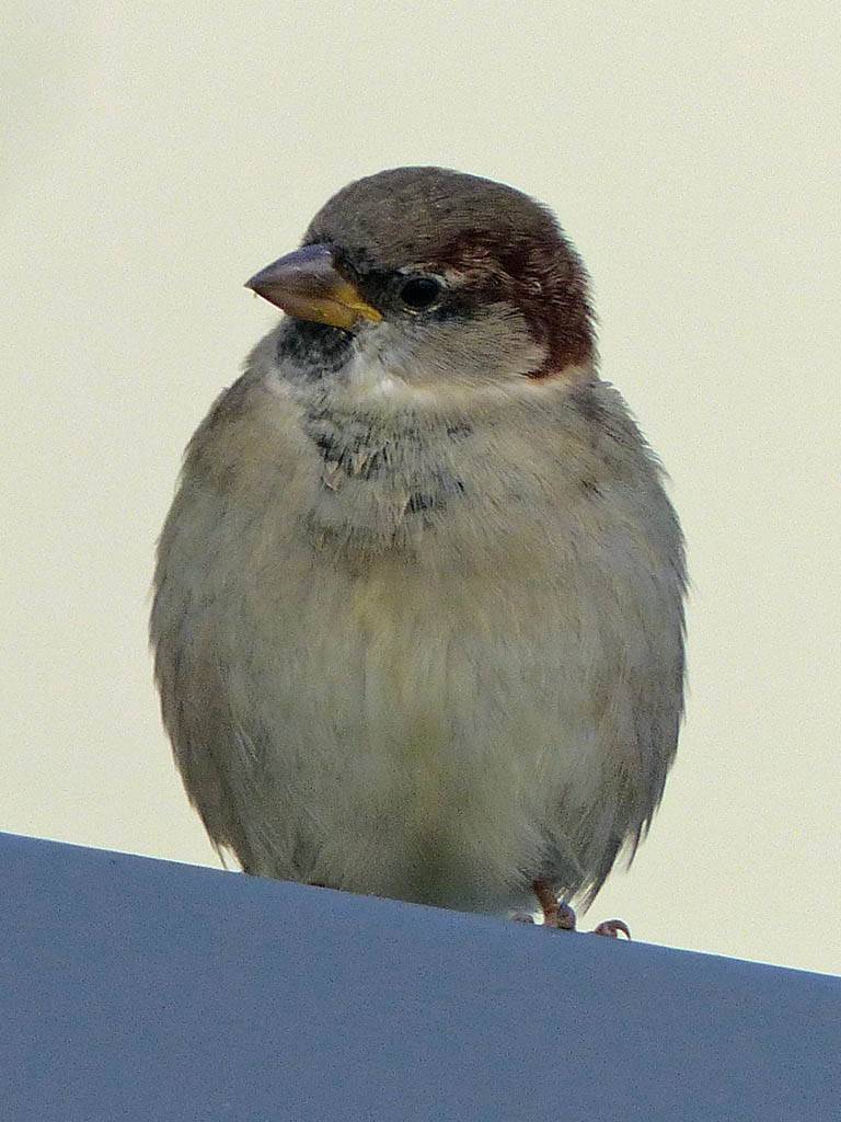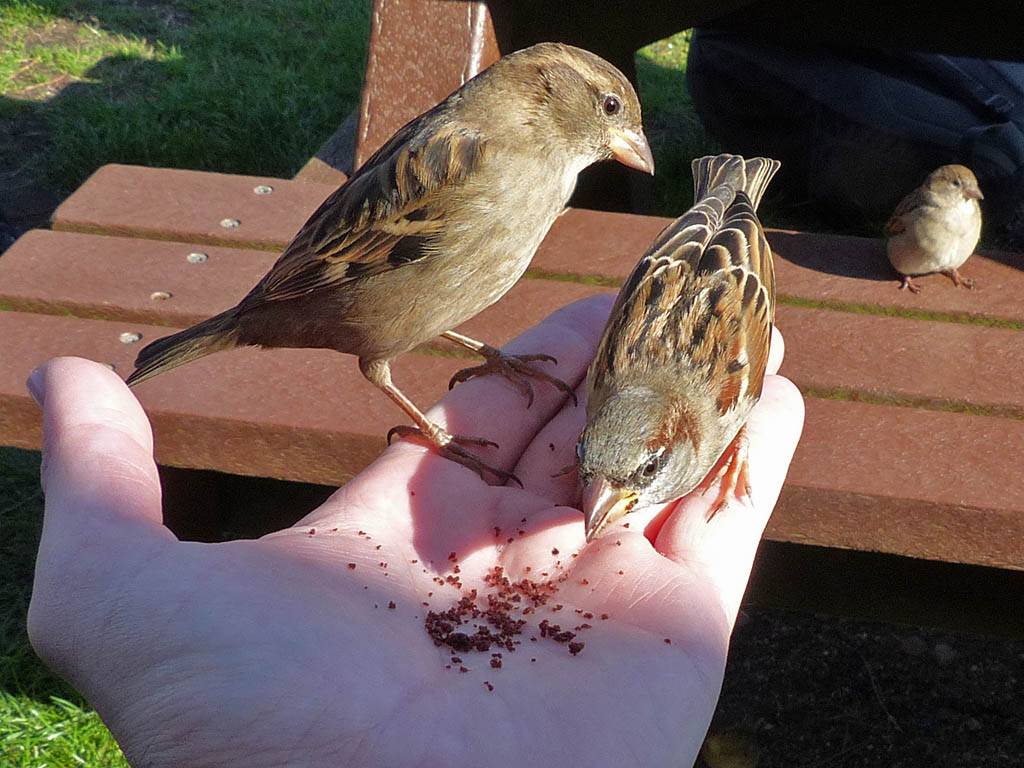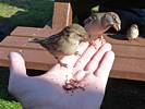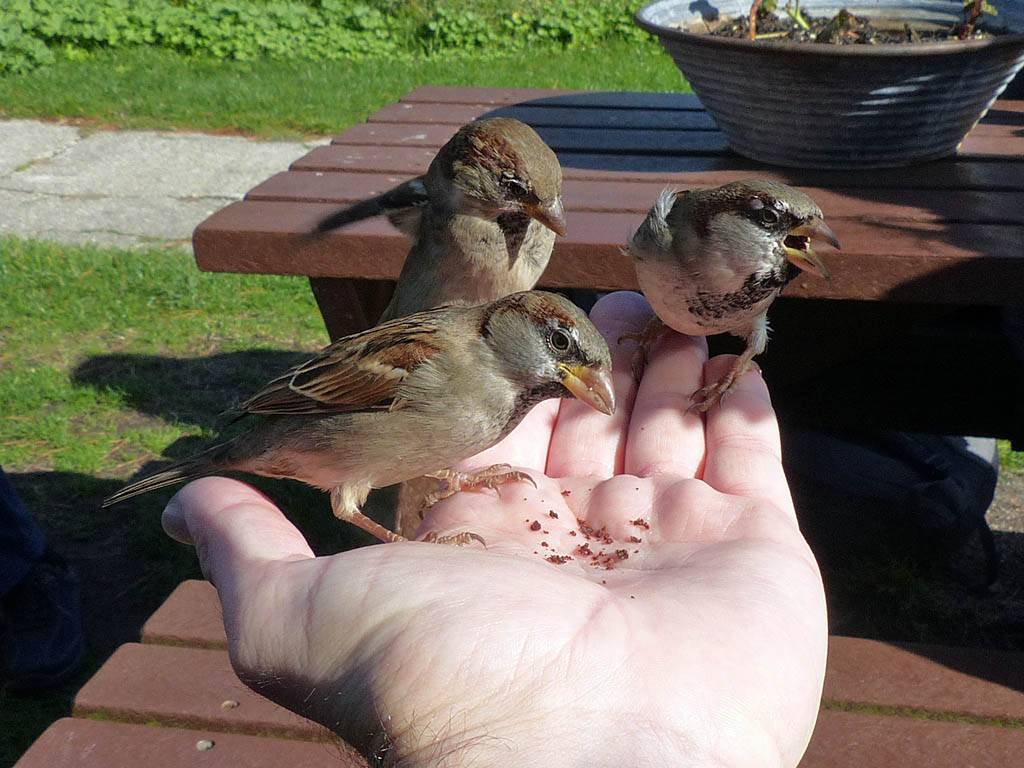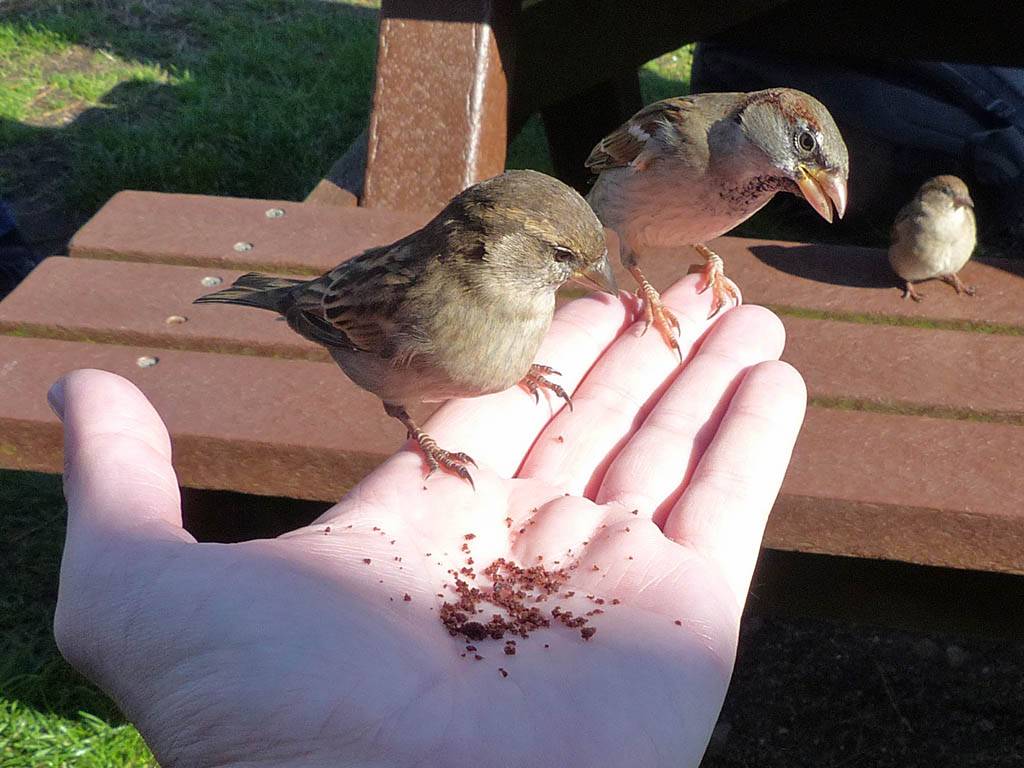 Cheers! Baileys and a Disarrono and Coke with a spectacular view across to St. Mary's and Tresco. | Like at the bakery, the Sparrows are very tame and explored very close to us to see if we had any food. |
