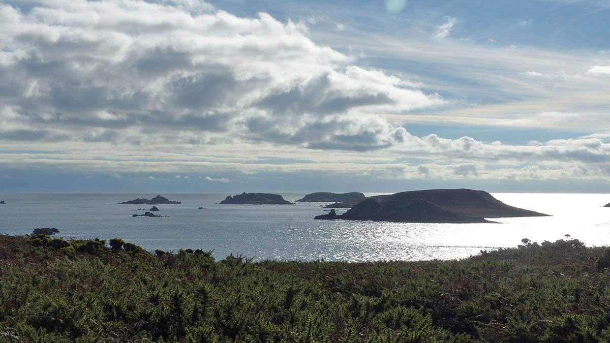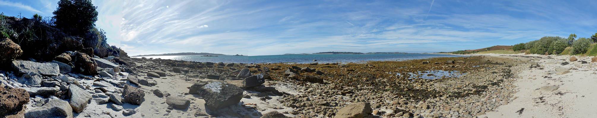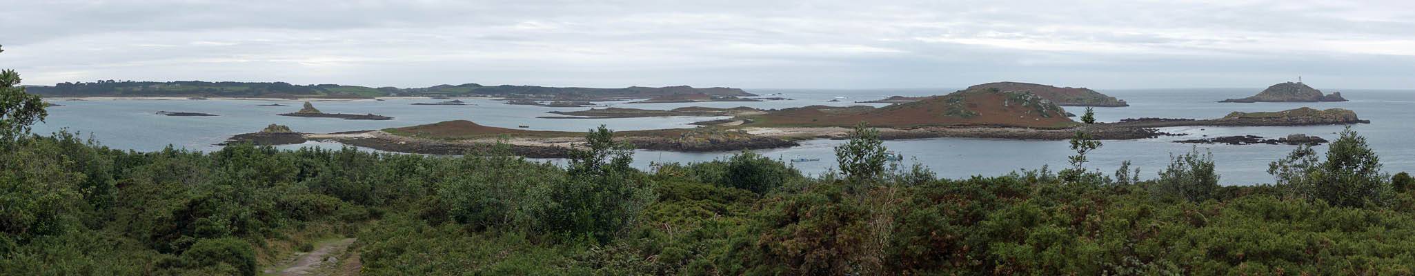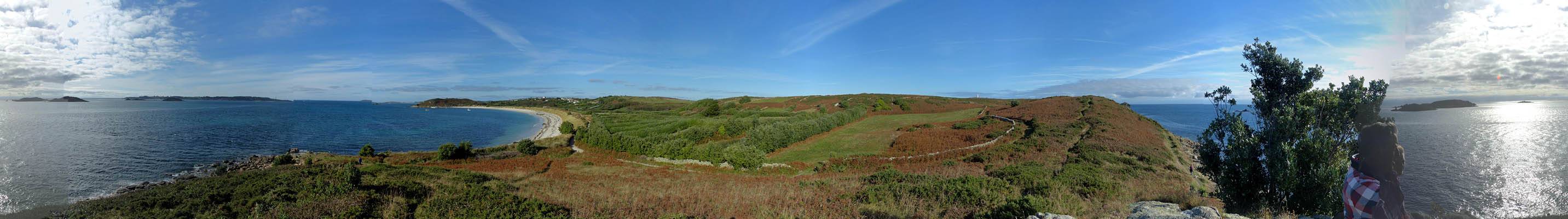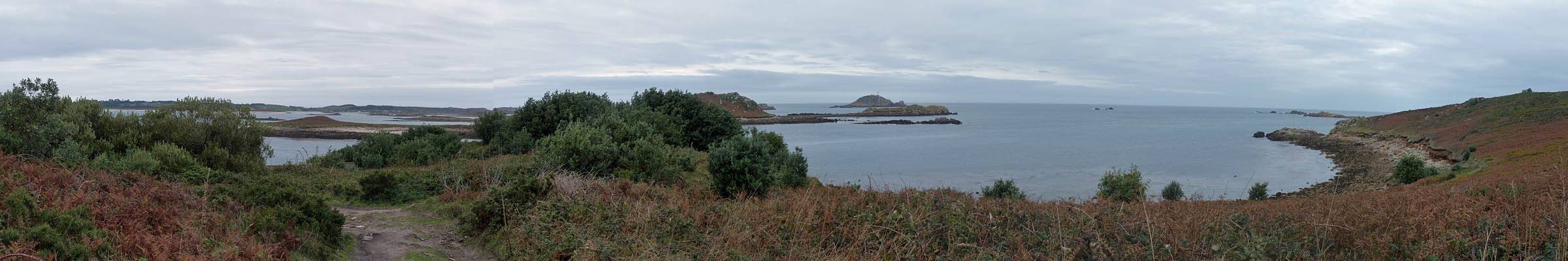 Another Sparrow closeup. | Sparrow art? | A couple of panoramas of the view. St. Mary's and Tresco in the background. | St. Mary's. To the far right St. Agnes is visible on the horizon. |