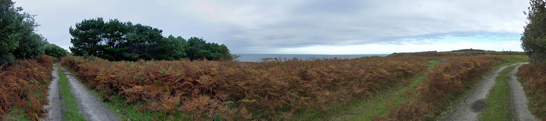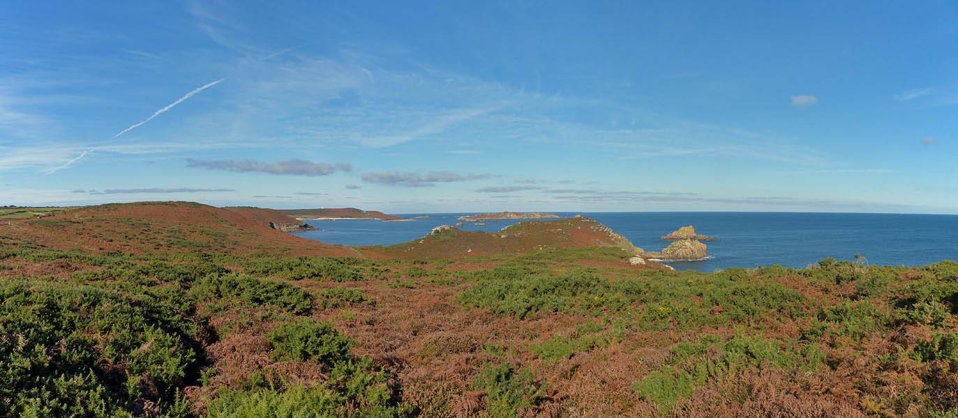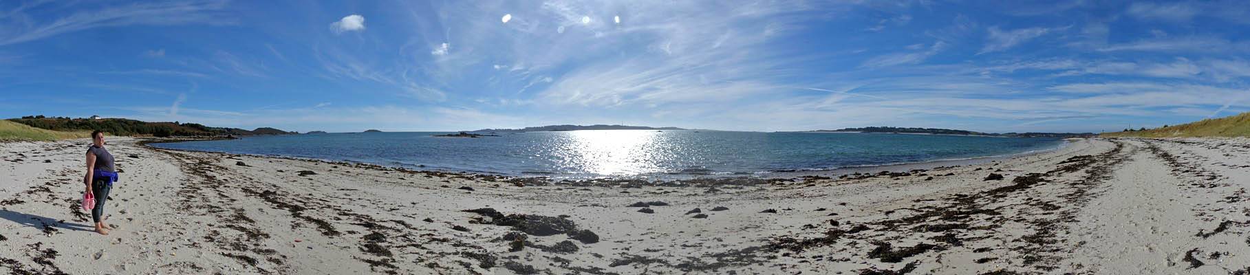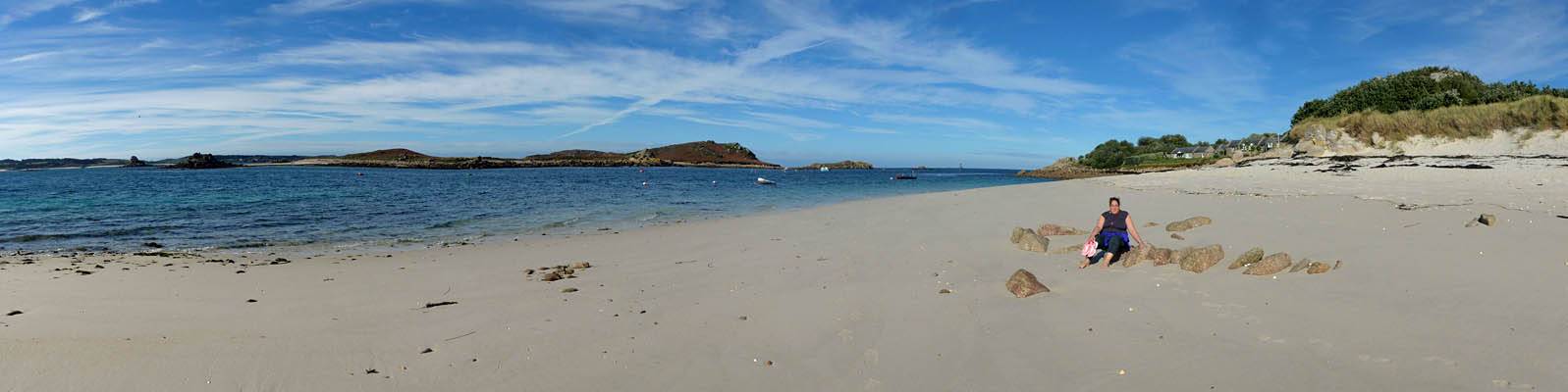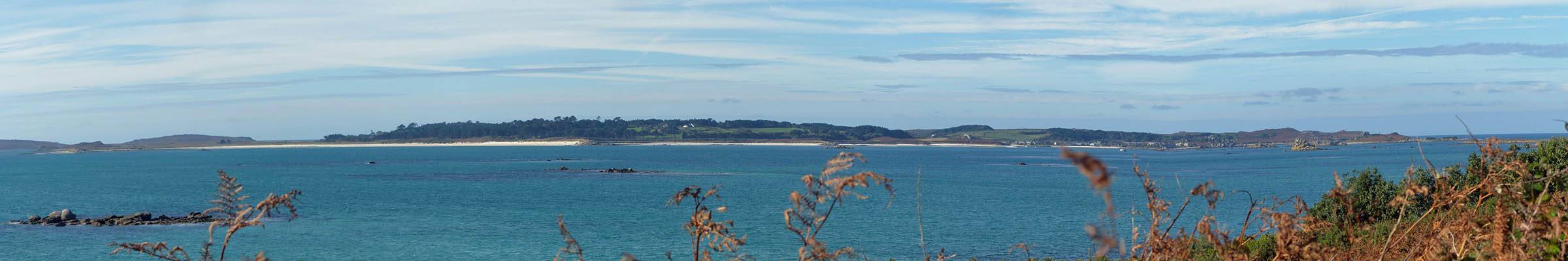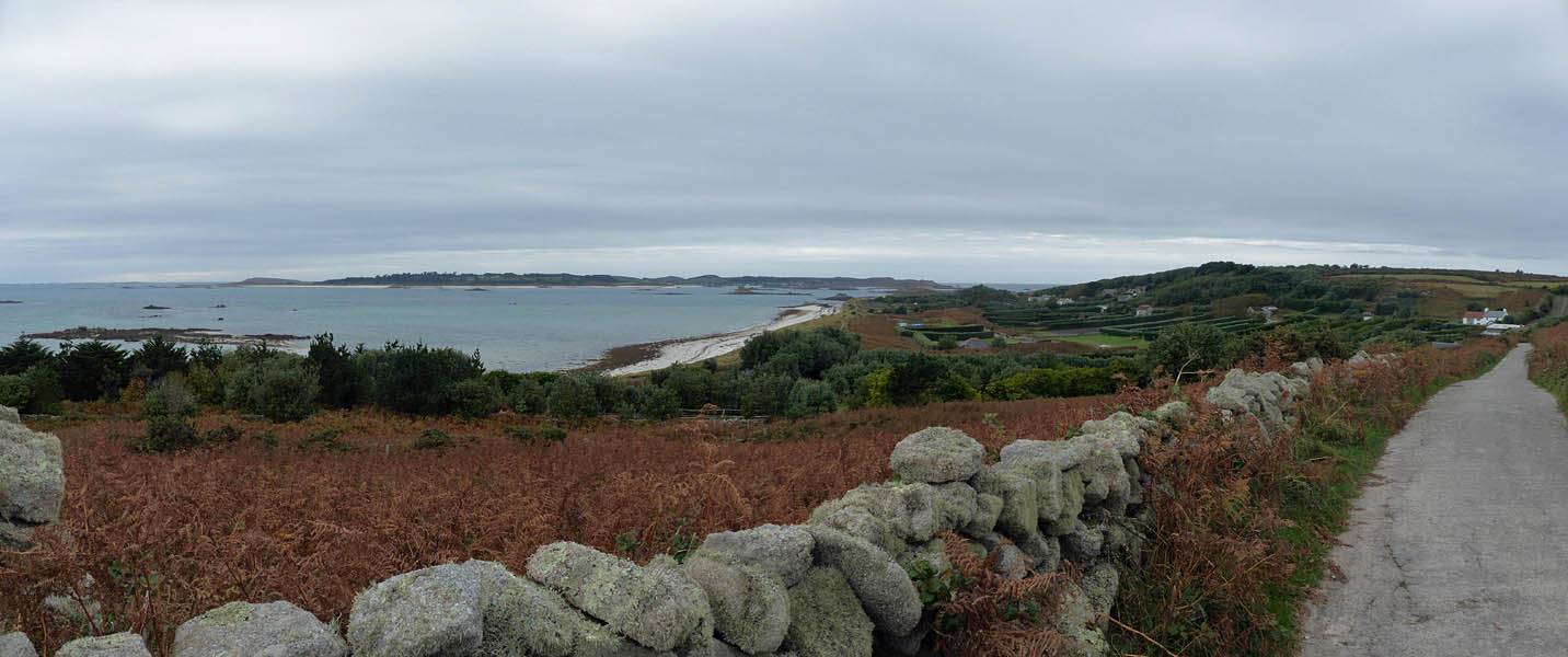 Another Sparrow closeup. | Sparrow art? | A couple of panoramas of the view. St. Mary's and Tresco in the background. | St. Mary's. To the far right St. Agnes is visible on the horizon. |