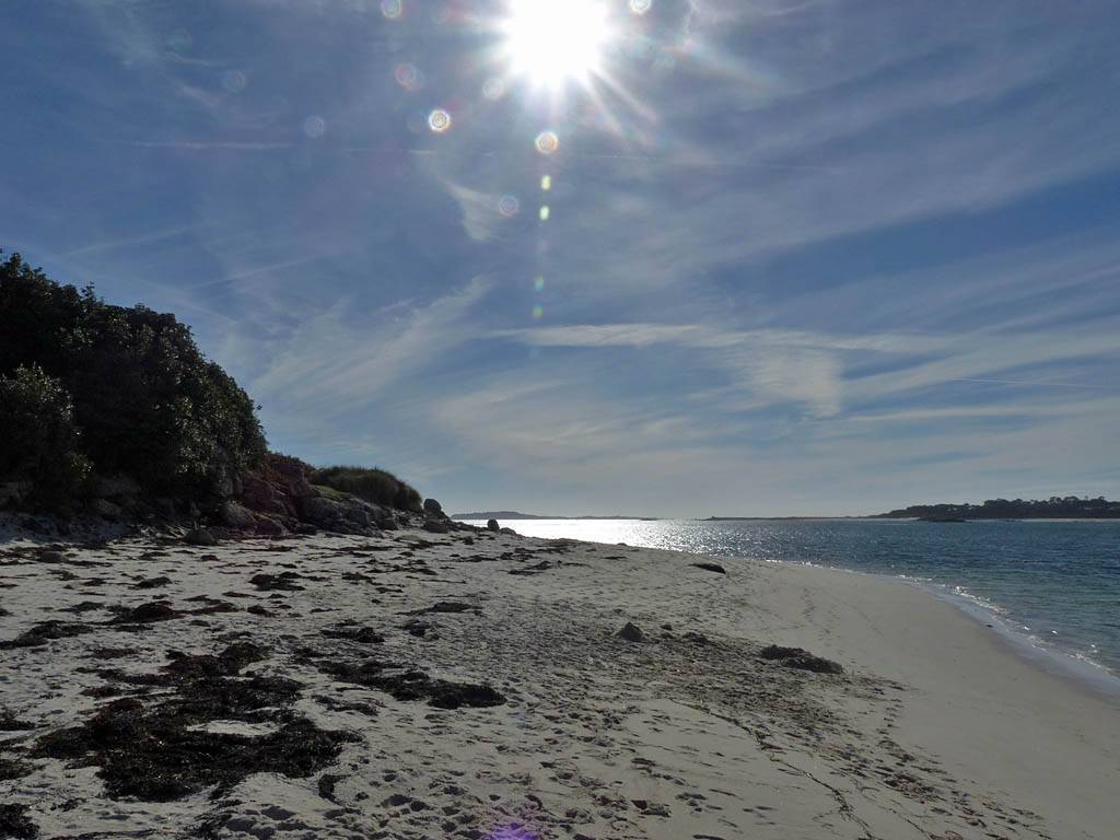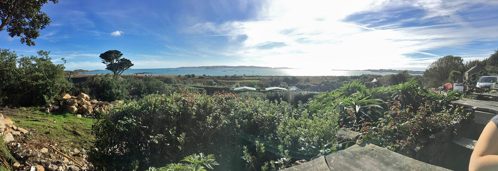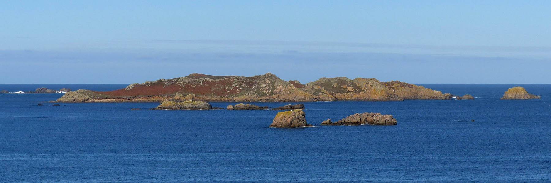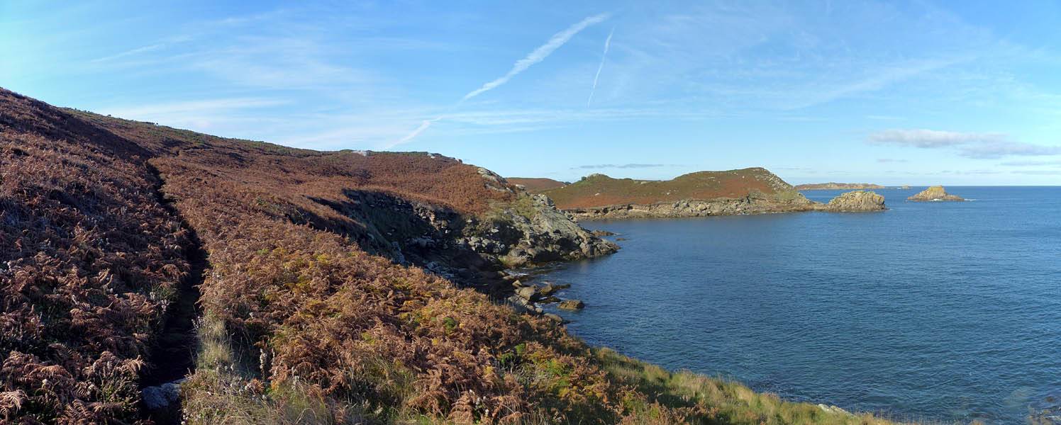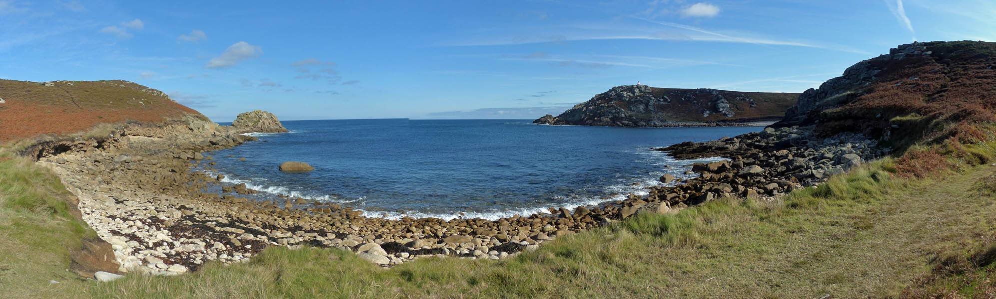 Another Sparrow closeup. | Sparrow art? | A couple of panoramas of the view. St. Mary's and Tresco in the background. | St. Mary's. To the far right St. Agnes is visible on the horizon. |