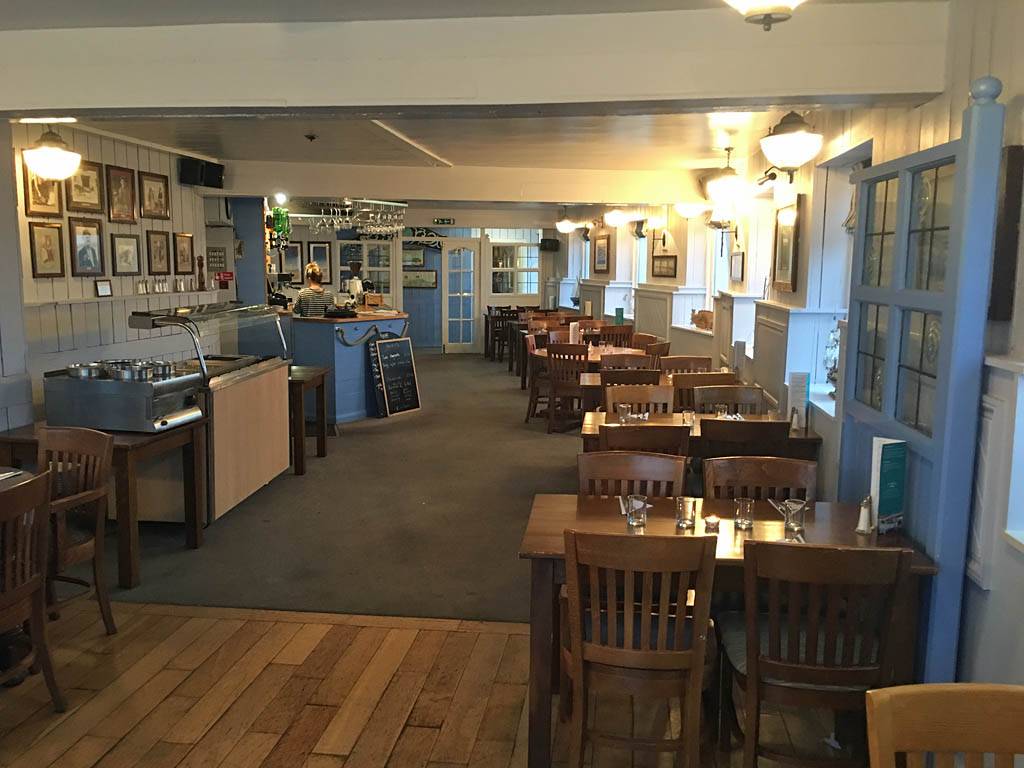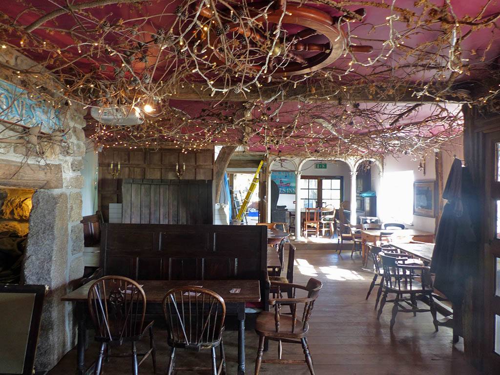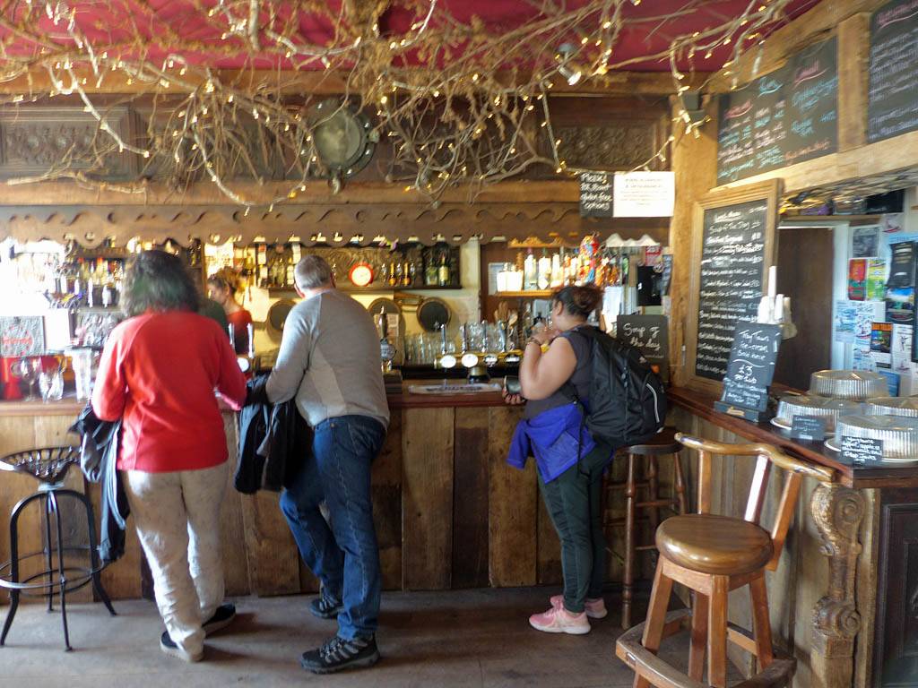 The path to the Seven Stones Inn. | The tree made the view even more spectacular. | The pub had a nice seating area outside. | Looking around inside as Renée orders a round. |
