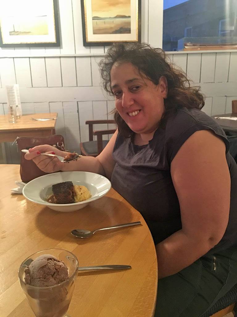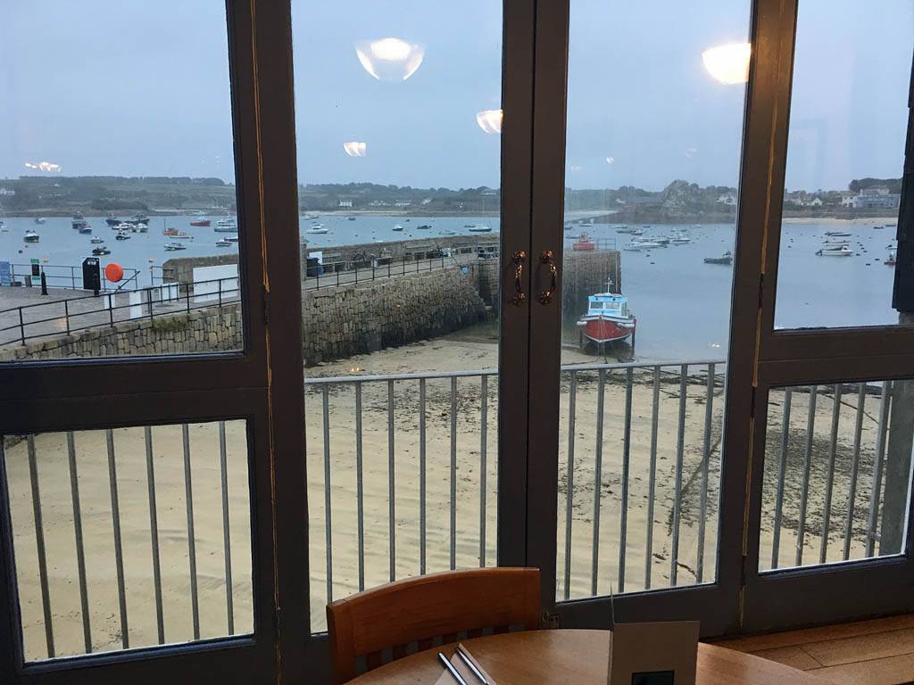 Our table at The Mermaid Inn was right by the window. | Table view of Town Beach and The Quay. | Dinner time! | We couldn't resist some dessert too. |