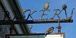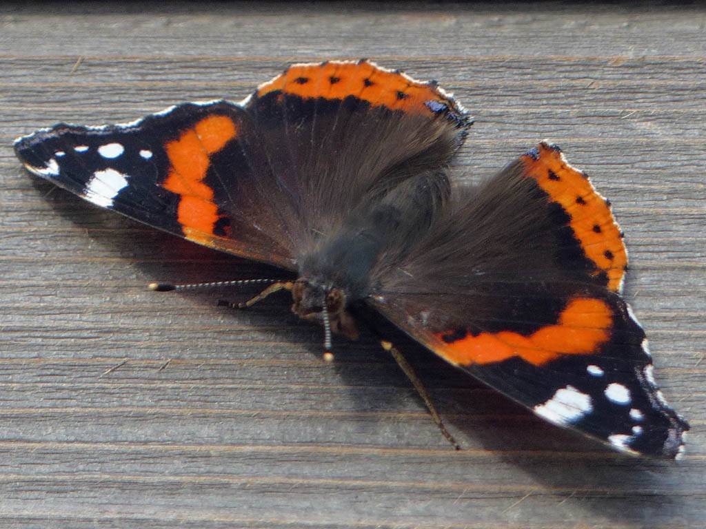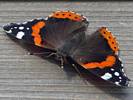 Arriving at the pier for the boat to St. Martin's. | Our boat today, The Surprise. | An incoming Skybus. | A Red Admiral butterfly basking on the side of the pier building as the sun comes out. | Sparrows patrolling the pier. |