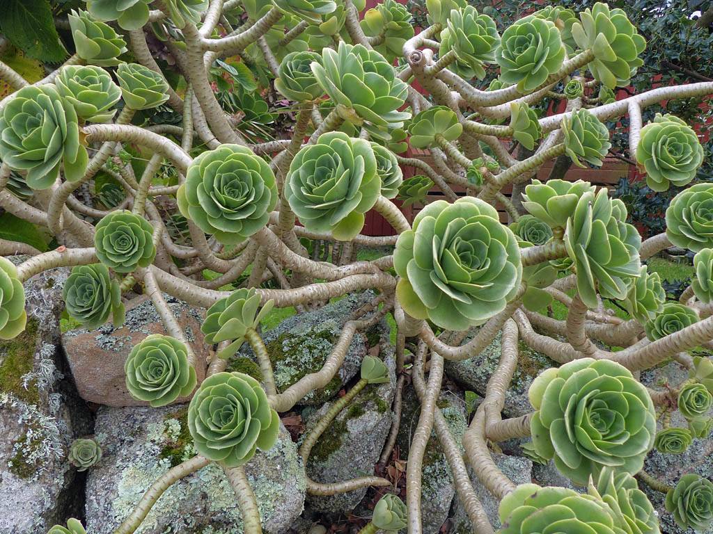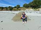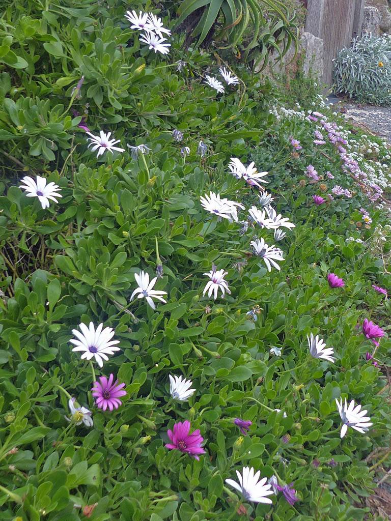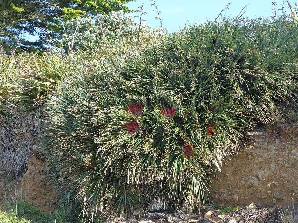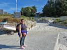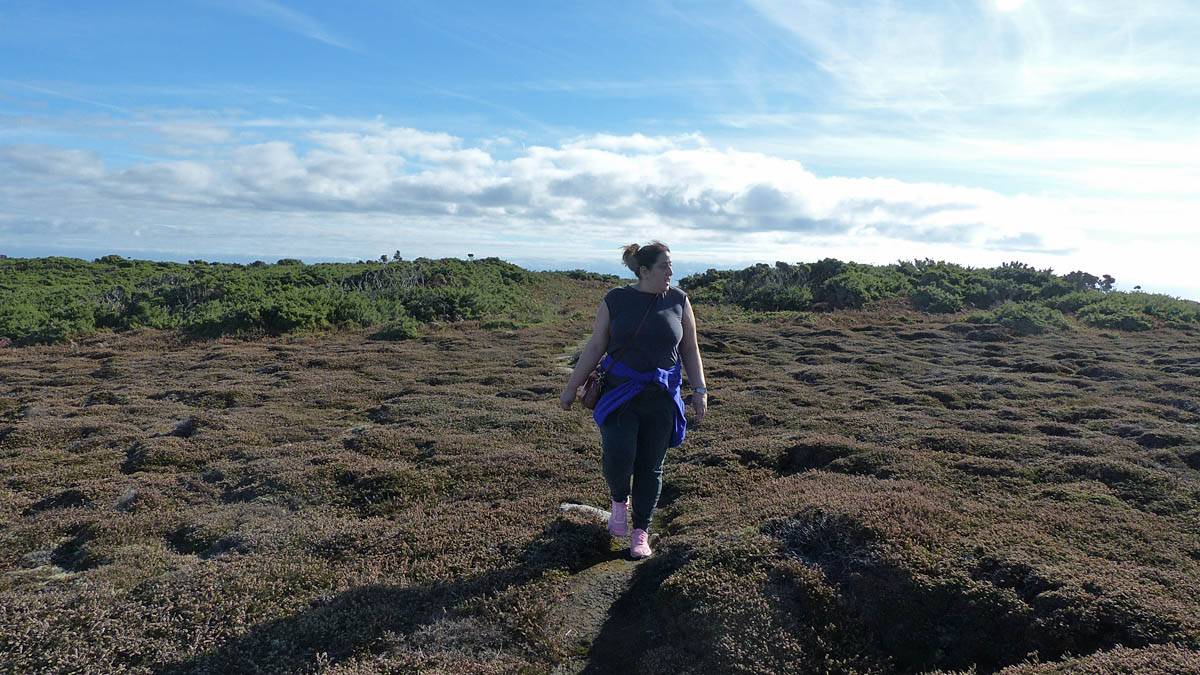 More scenic views down a slope as Renée looks on from the path above. | Checking out one of the succulent plants on the way back to the quay. |